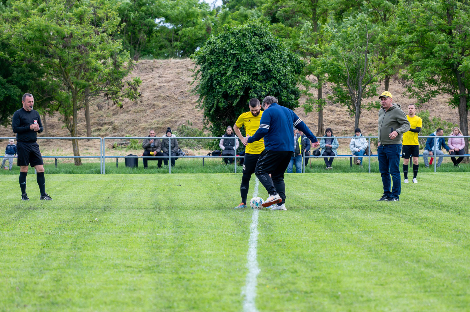 A Hunyadi történetének első kezdőrúgását végezte el egy messziről és nem egyedül jött szurkoló, akit a gyúrója még a kezdőkörbe is elkísért, ha netán meghúzódna az egyméteres passzban.