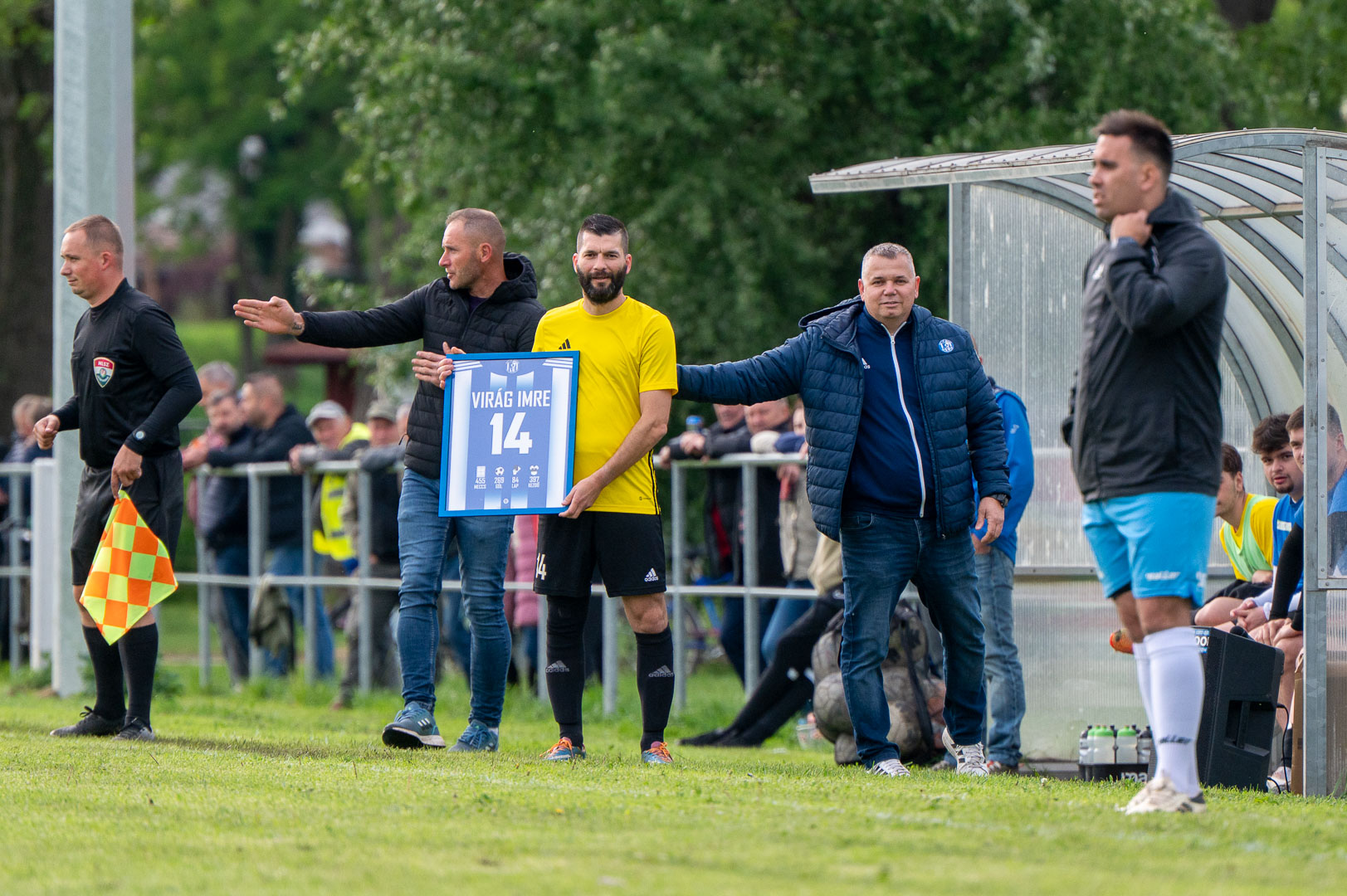 Ami igazán emlékezetessé teszi a mérkőzést, az Virág Imre 455 mérkőzés, ebből 397 kezdőként, 269 gól, 84 lap után történt visszavonulása. Öpi mintegy húsz percet töltött a pályán, hogy aztán a játékvezető gratulációját követően játékostársai sorfala között levonuljon a kispadra. Az egyesület ajándékát, a kék-fehér hunyadis színeket megjelenítő mezt és 14-es számát, valamint az előbb felsorolt adatokat tartalmazó képet Farkas Péter elnök adta át számára.