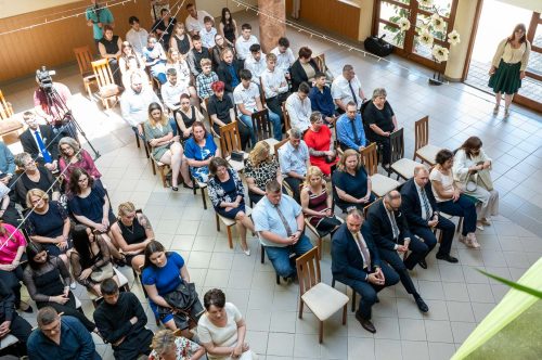 Az iskola gyönyörűen feldíszített aulájában elsőként intézményünk diákjait és tanárait szólították, akiknek Pörneki Attila István Főigazgató Úr és Simon István Tamás Kancellár Úr adta át az okleveleket.