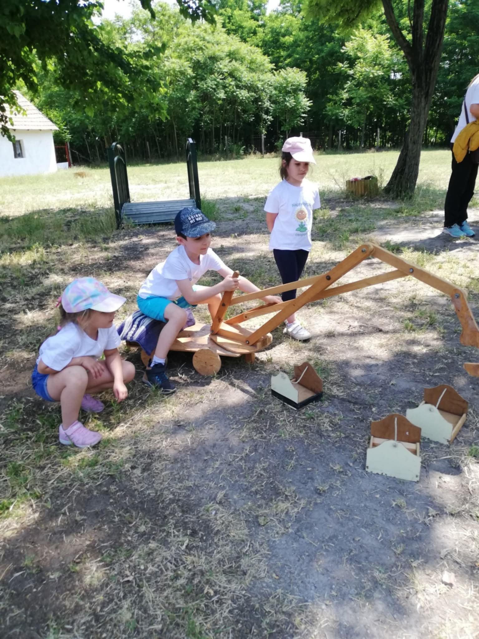 A játszóparkban szabadon játszhattunk a vendéglátóink által készített ötletes szabadtéri játékokon.