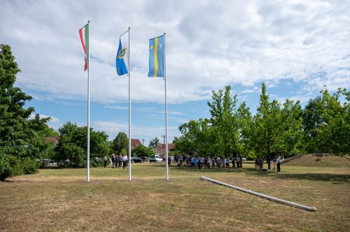A beszédek végén felállításra került a negyedik zászlórúd, amire felhúzták a címeres magyar trikolort, majd a küldöttségek az otthonukból hozott földet elszórták a malom dombjára.