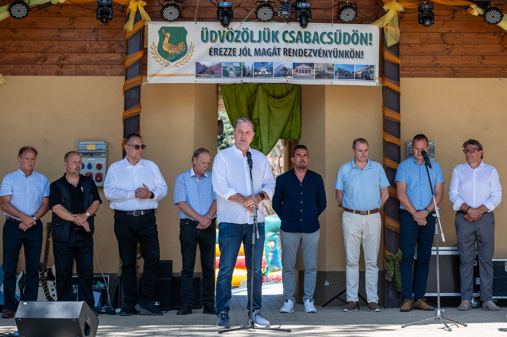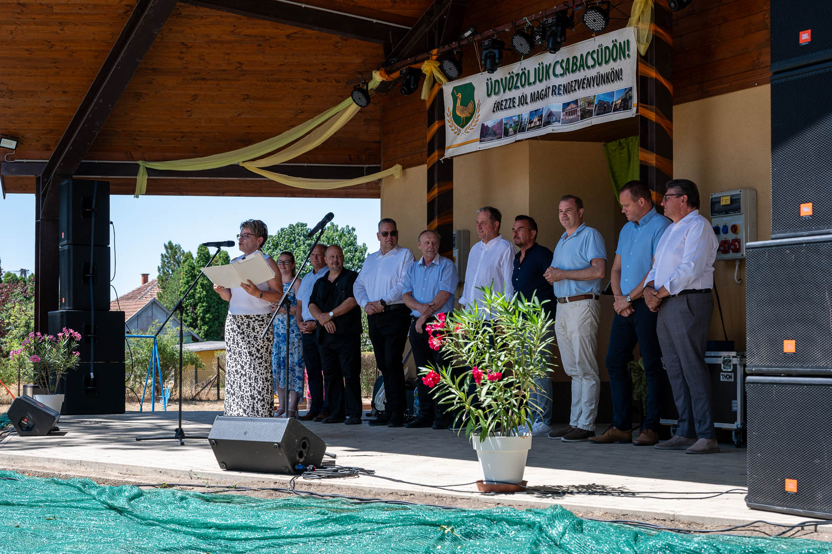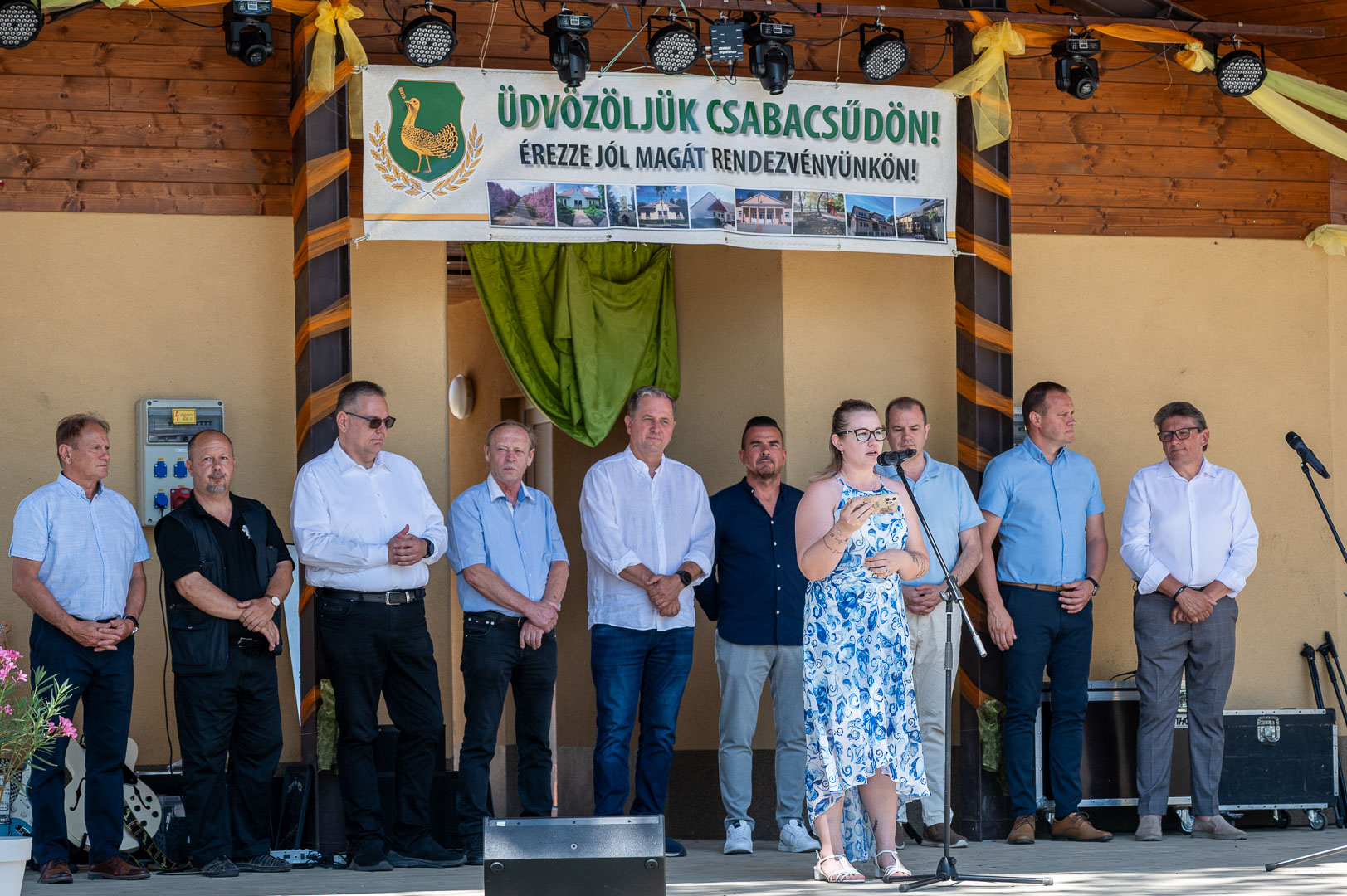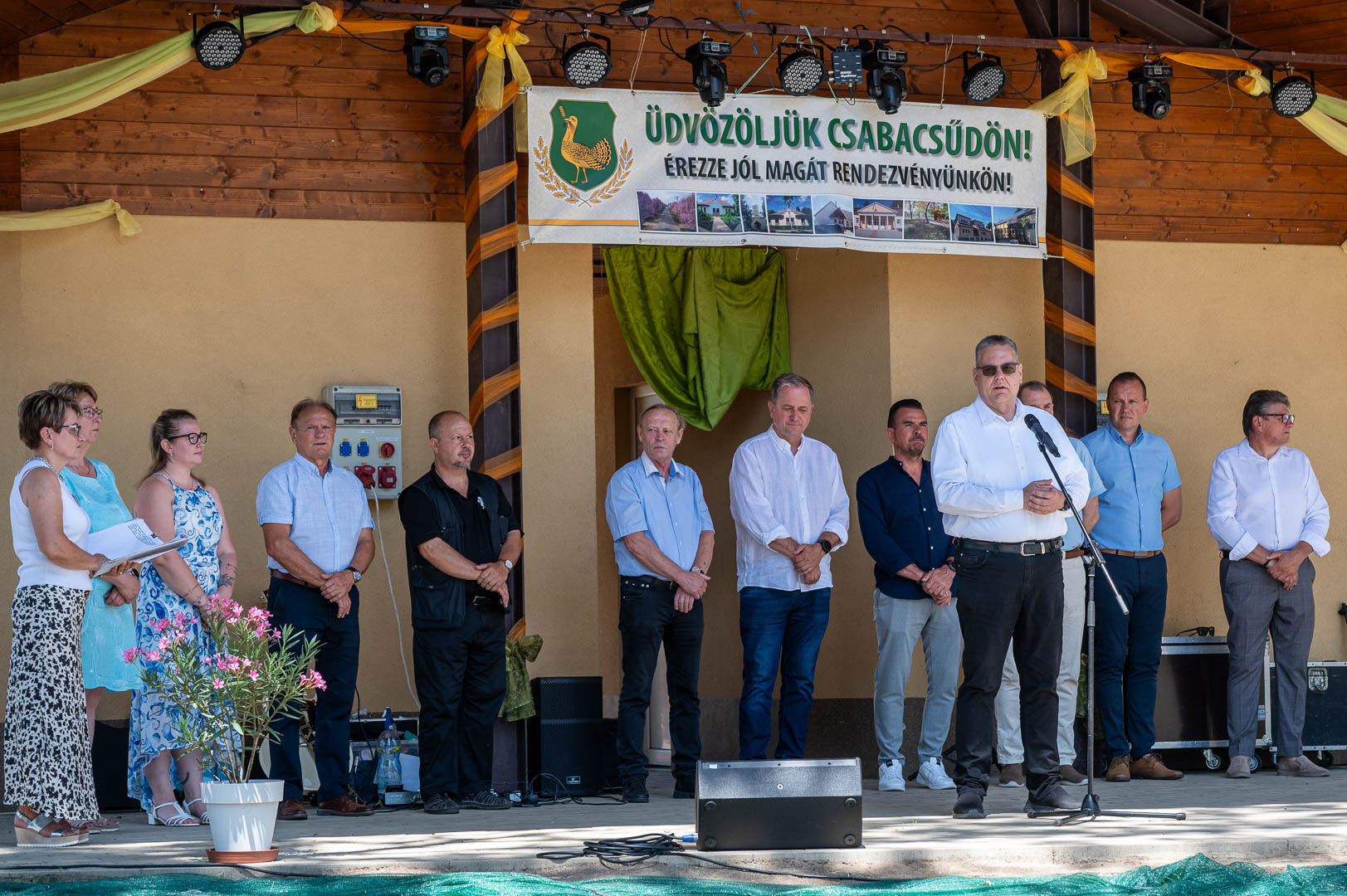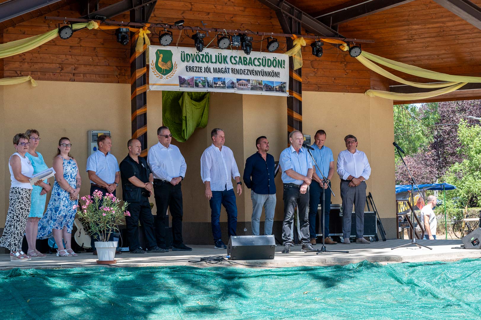 A közösségi téren Molnár József polgármester köszöntötte az egyre sokasodó csabacsűdieket. Az eseményt a környék sok polgármestere megtisztelte: Csatáról Csákvári Marián, Szarvasról Hodálik Pál, Gyomaendrődről Toldi Balázs, Kondorosról Ribárszky Péter, Békésszentandrásról Sinka Imre, Kardosról Brlás János, Hunyáról Kiszely Imre, de eljött Dankó Béla országgyűlési képviselő és Gaál Roland járási hivatalvezető is.