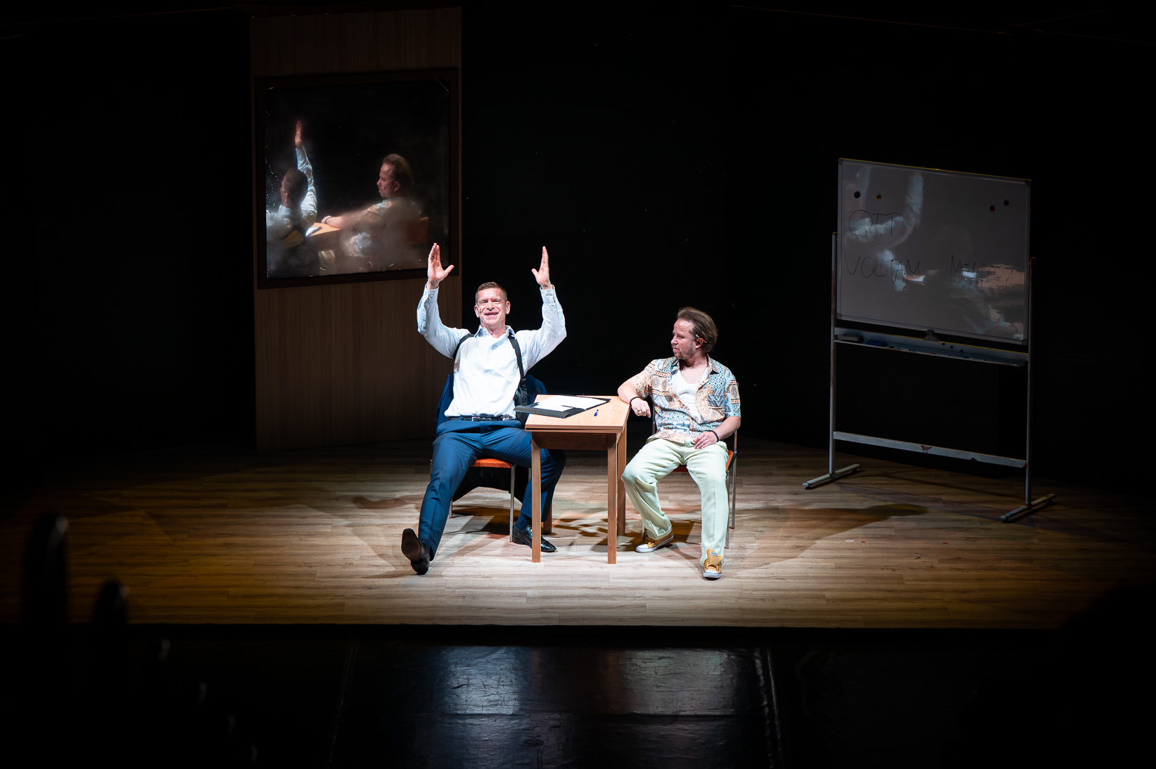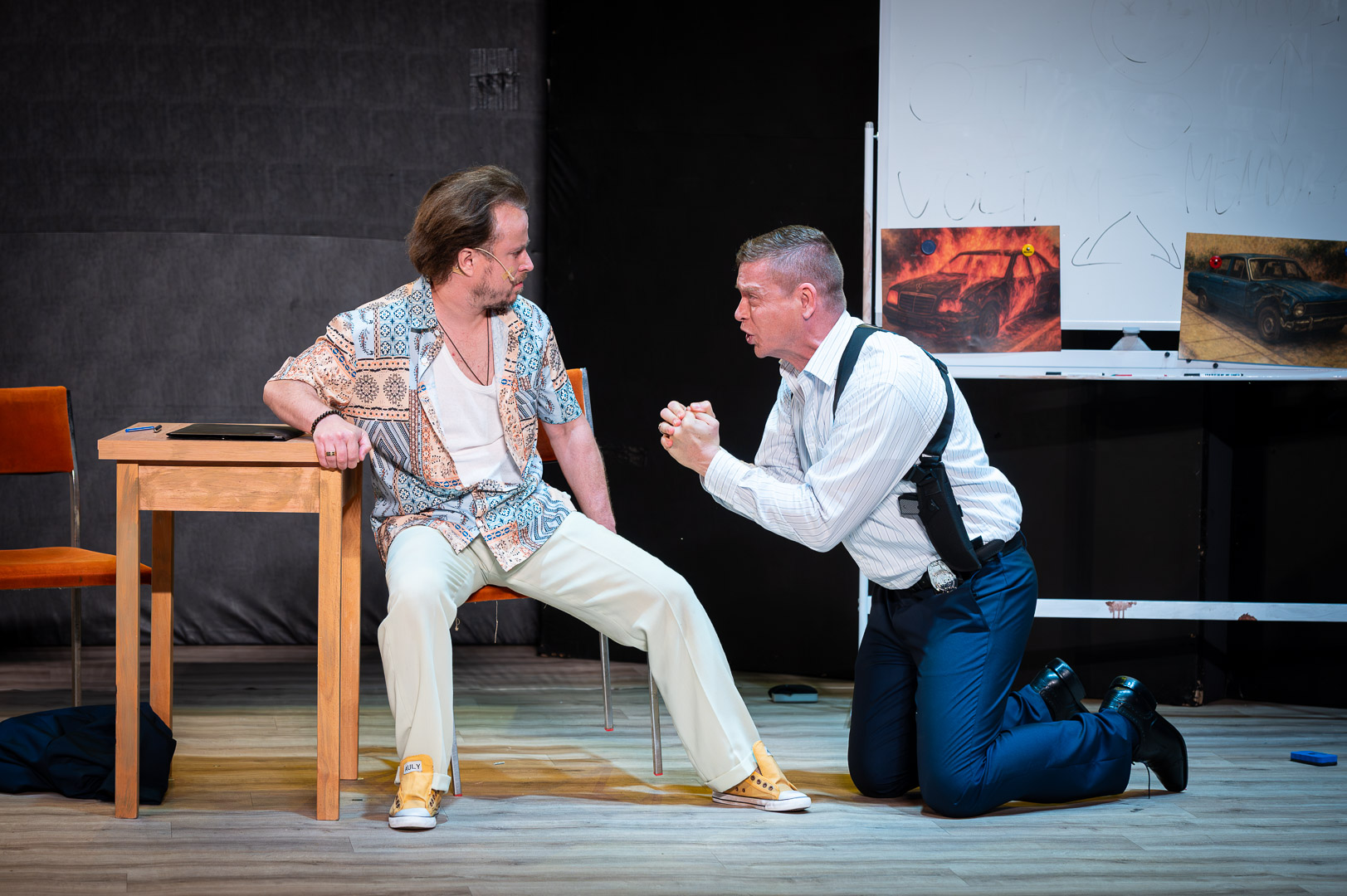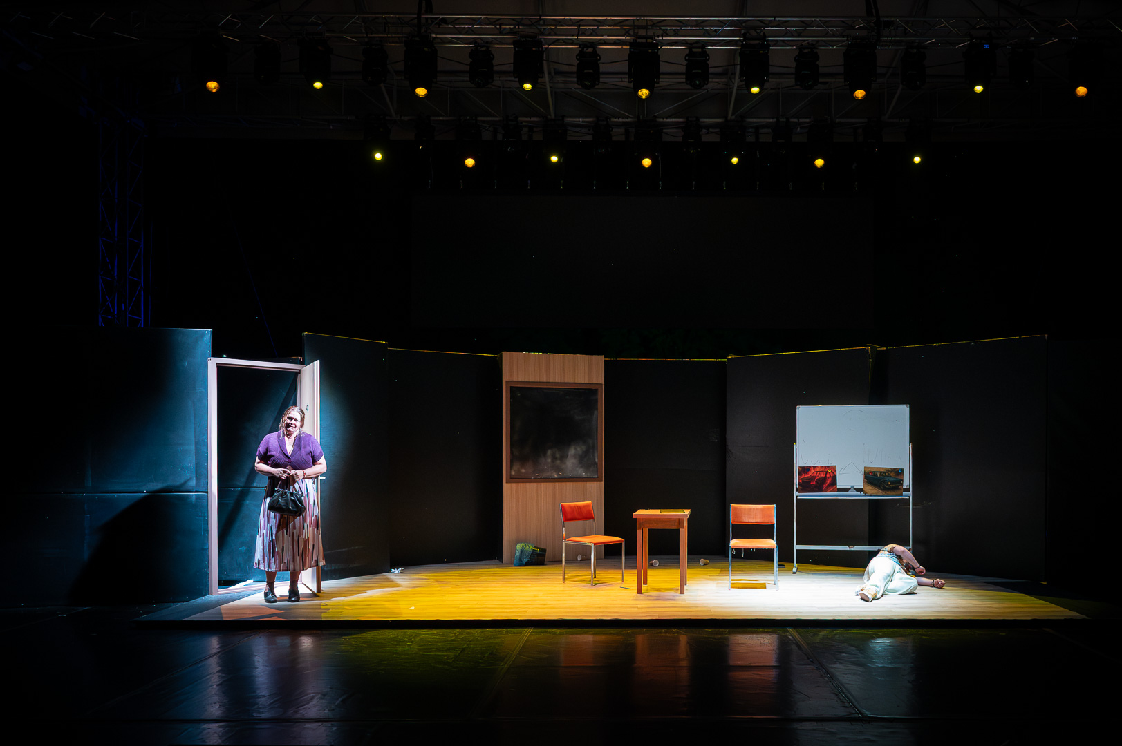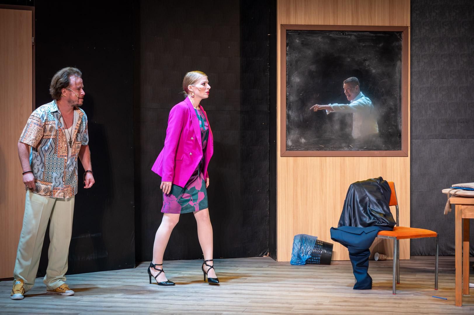 Ez a bemutató a Cervinus kisszínpadán, a kamarateremben került bemutatásra, de pénteken este a Vízi Színház hatalmas színpadán is ugyanolyan feszült előadást láttunk.