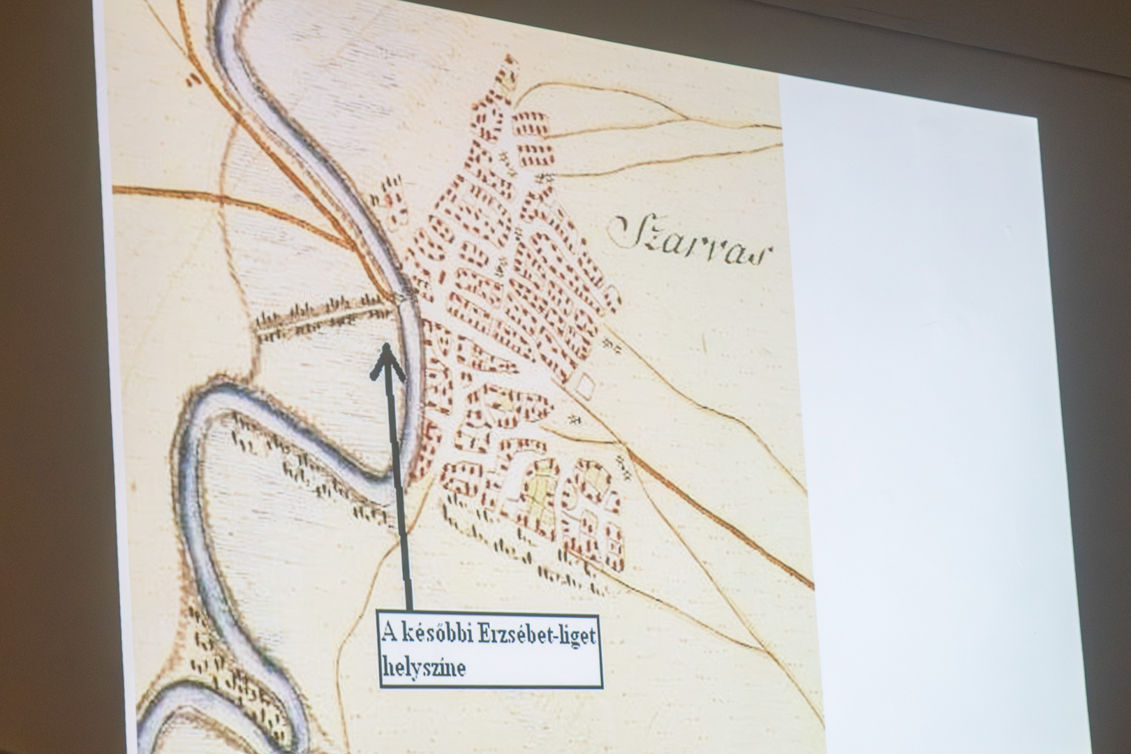 Tóth Tamás a természeti környezet eredeti állapotából indított, vagyis a Kárpát-medence vízföldrajzi állapotától, amikor még az ember nem háborgatta környezetét. Ekkor a későbbi Erzsébet-liget területe a folyómenti löszpusztára volt jellemző, ártéri ligeterdőfoltokkal, mocsarakkal, szikesekkel. Innen jutottunk el – kisebb-nagyobb lépésekkel – addig, amíg először megjelent a térképeken és a leírásokban a terület parkká válásának igénye, lehetősége. Tessedik volt, aki beszámolt arról, hogy vagy négyezer fűzfát telepített erre a területre, valószínűleg ez volt az első fásítási kísérlet. Nem sokkal később, a Tisza-völgy szabályozásának részeként a Hármas Körös új mederbe terelésével a Szarvast éltető vízfolyás holtággá változott, s ez alapjaiban változtatta meg a lehetőségeket. A híres Ponyiczki-térkép már kultúrparkot ábrázol, köröndökkel, Pavilonnal. Tóth Tamás megemlítette Molnár Zoli bácsi felmérésit, s azt, hogy az Erzsébet-liget a környezeti nevelés helyszínévé is vált, amit segít a Városszépítők által kialakított tanösvény. Az ökológus szemével felfedezhető problémákról is szólt, ami a klimatikus változásoktól, a középkorú fák hiányán át a borostyán burjánzásáig terjed, a legfontosabb pedig a zöld védősáv kialakítása lenne. Megoldási javaslatokat is tett,, amiket a liget kezelőjével, a Koméppal is megbeszéltek már, s a városgazdálkodási cég hozzá is látott az Erzsébet-liget „felújításához”.