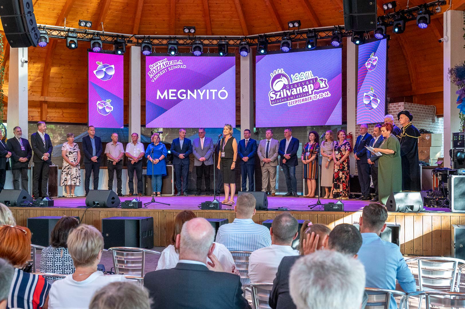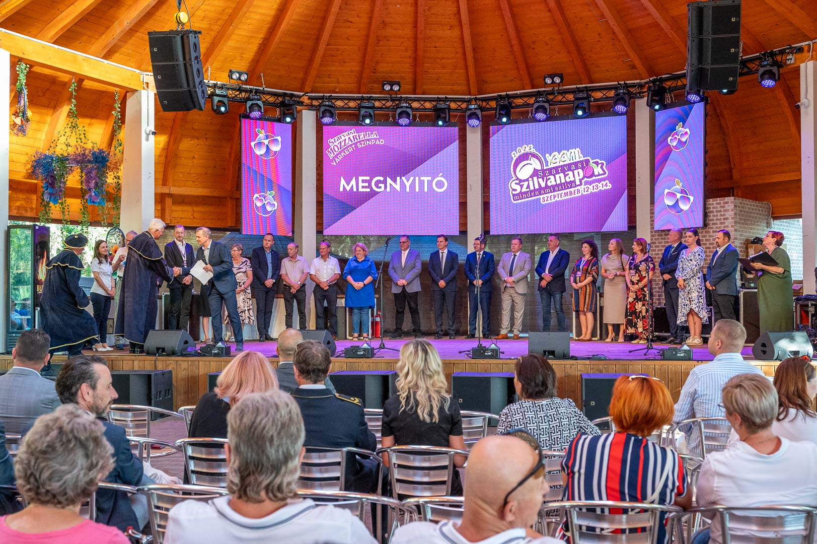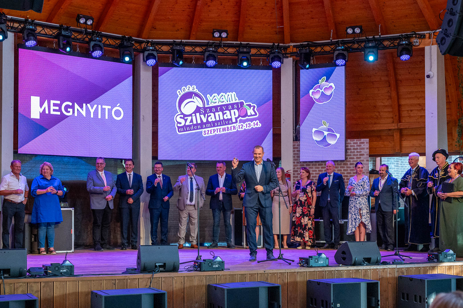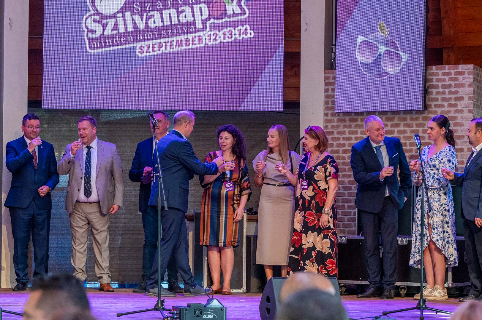 A megnyitóra egyébként a szokásos módon, felvonulással érkeztek a város vendégei és a szarvasi civil szervezetek, iskolák képviselői, ahol mindenek előtt a Szarvasi Muslincák férfikar dalcsokrát hallhattuk. A szilváról és Szarvasról szóló nóták után Fodor Mariann, a Szilvanapok háziasszonya, majd Hodálik Pál, Szarvas polgármestere köszöntötte a közönséget. A polgármester elmondta, hogy a Szilvanapok a város talán legfontosabb és legnagyobb rendezvénye, már nemcsak városi és régiós, de országos rangot vívott ki magának az évek során. Ezekre a napokra időzíti sok elszármazott szarvasi a hazalátogatását, sokan rendeznek nagycsaládi programokat és sok ilyenkor az osztálytalálkozó is. Az idei Szilvanapokat a rendezők térben és időben is kibővítették, hiszen három színpadon kínálják a programokat péntek délutántól vasárnap délutánig. Hodálik Pál ezután a színpadra szólította a XXVII. Szarvasi Szilvanapok díszvendégeit: Bruno Hromyt a Szlovák Köztársaság budapesti nagykövet-helyettesét, Molnár Sándort a Megyei Közgyűlés elnökét, Gaál Rolandot, a Szarvasi Járási Hivatal vezetőjét, Kozsuch Kornélt, a Megyei Agrárkamara elnökét, Bohrát Máriát, Örménykút polgármesterét, Brlás Jánost, Kardos polgármesterét, Molnár Józsefet, Csabacsűd polgármesterét, Toldi Balázst, Gyomaendrőd polgármesterét, Trabach Tibort, Cserkeszőlő polgármesterét, Dósa Zsuzsát a Cervinus Teátrum és a fesztivál igazgatóját, Frankó Annát, a Szarvasi Szlovák Önkormányzat elnökét valamint Groditzki Annát, a Szarvas Városi Diáktanács elnökét. Ezzel azonban még nem volt vége a vendégszólításnak, mert a testvérvárosok képviselőit is kihívta Hodálik Pál a színpadra: Barótról Dombi Hild Rékát, Banovcéról Robert Gasparikot, ÉLesdről Kajántó Pált, Keuruuból Olli Haapenent, Poprádról Adrián Kromkát, Szentegyházáról Simon Rékát, Szilágysomlyóról Szabó Ervin Csabát, Magyarkanizsáról pedig Milos és Danilo Kravicot.