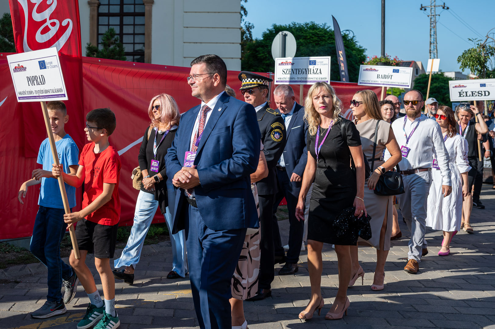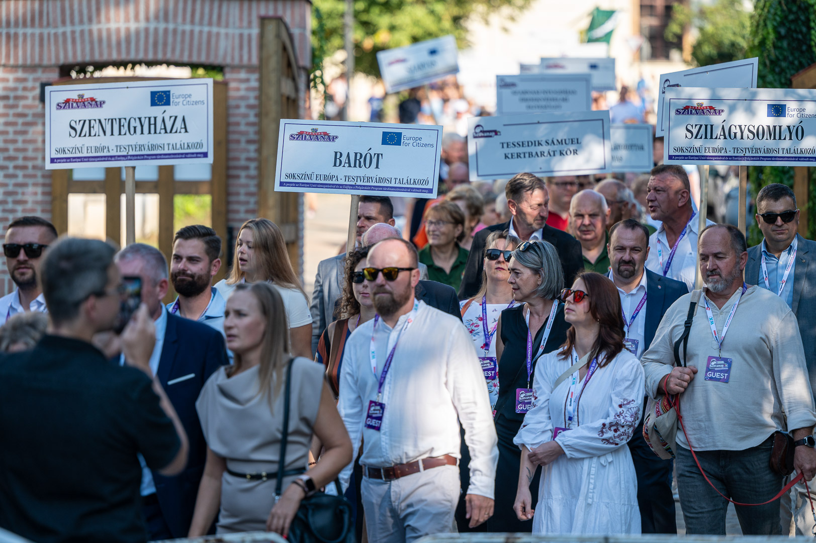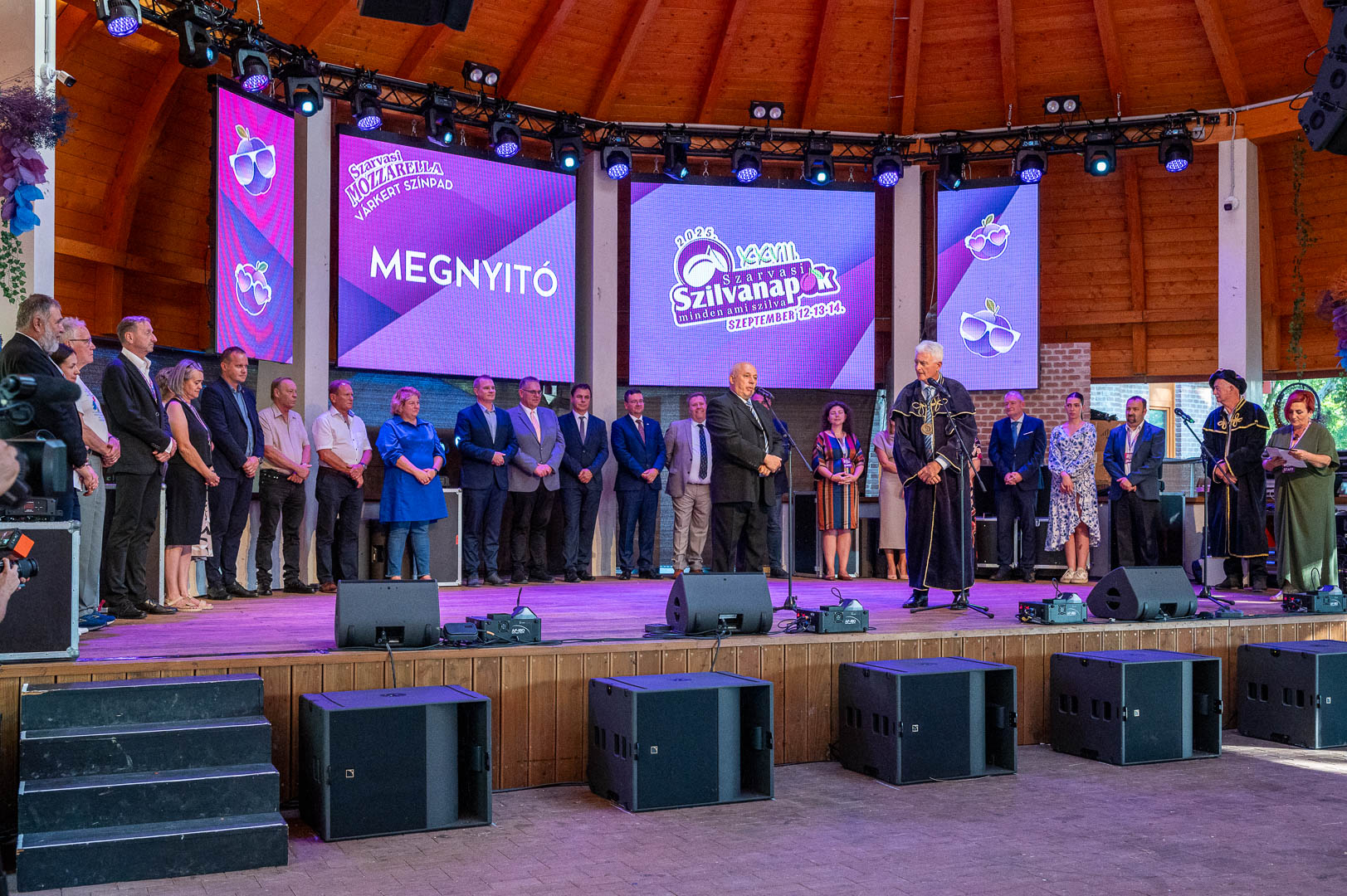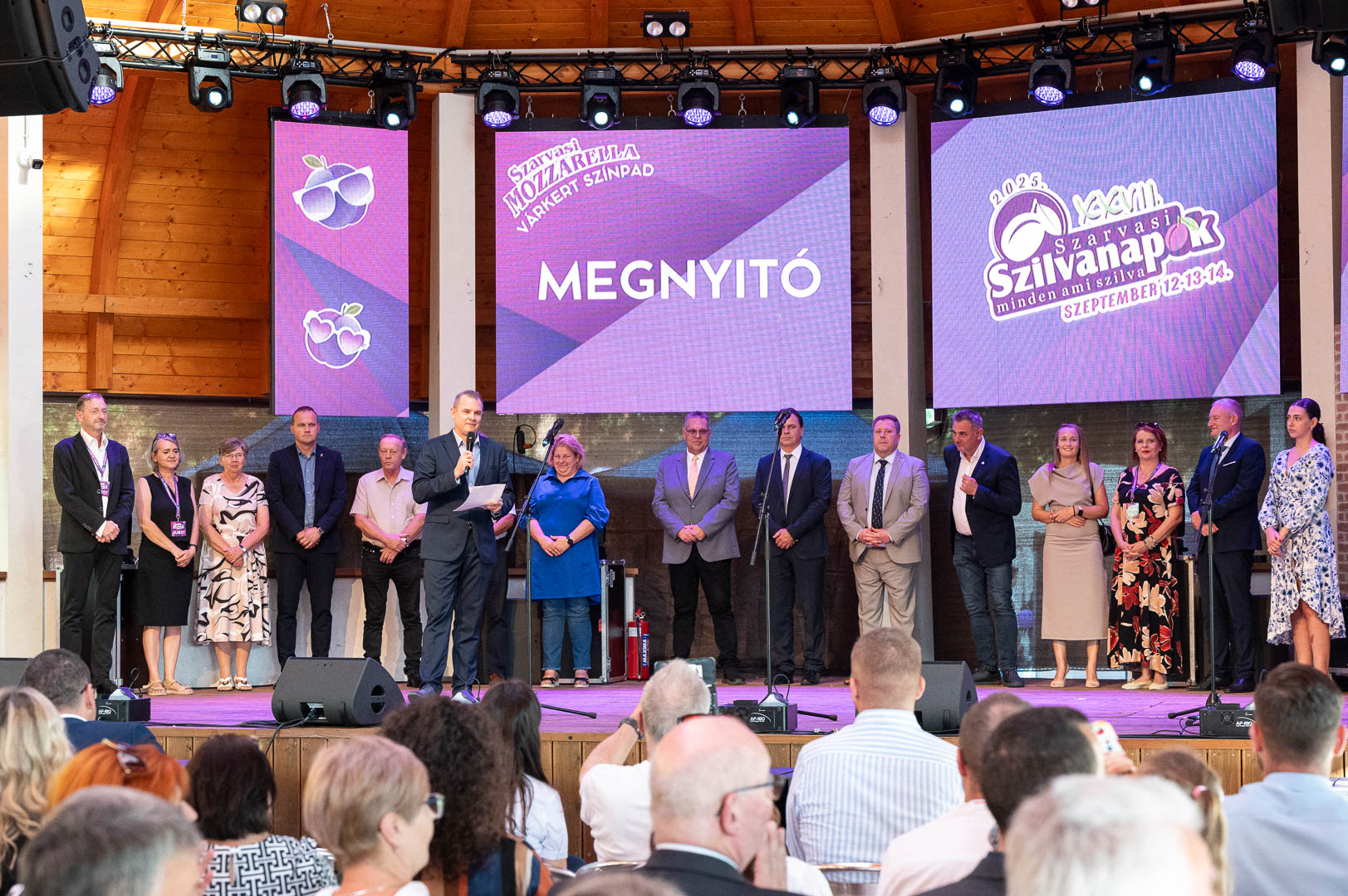 A megnyitóra egyébként a szokásos módon, felvonulással érkeztek a város vendégei és a szarvasi civil szervezetek, iskolák képviselői, ahol mindenek előtt a Szarvasi Muslincák férfikar dalcsokrát hallhattuk. A szilváról és Szarvasról szóló nóták után Fodor Mariann, a Szilvanapok háziasszonya, majd Hodálik Pál, Szarvas polgármestere köszöntötte a közönséget. A polgármester elmondta, hogy a Szilvanapok a város talán legfontosabb és legnagyobb rendezvénye, már nemcsak városi és régiós, de országos rangot vívott ki magának az évek során. Ezekre a napokra időzíti sok elszármazott szarvasi a hazalátogatását, sokan rendeznek nagycsaládi programokat és sok ilyenkor az osztálytalálkozó is. Az idei Szilvanapokat a rendezők térben és időben is kibővítették, hiszen három színpadon kínálják a programokat péntek délutántól vasárnap délutánig. Hodálik Pál ezután a színpadra szólította a XXVII. Szarvasi Szilvanapok díszvendégeit: Bruno Hromyt a Szlovák Köztársaság budapesti nagykövet-helyettesét, Molnár Sándort a Megyei Közgyűlés elnökét, Gaál Rolandot, a Szarvasi Járási Hivatal vezetőjét, Kozsuch Kornélt, a Megyei Agrárkamara elnökét, Bohrát Máriát, Örménykút polgármesterét, Brlás Jánost, Kardos polgármesterét, Molnár Józsefet, Csabacsűd polgármesterét, Toldi Balázst, Gyomaendrőd polgármesterét, Trabach Tibort, Cserkeszőlő polgármesterét, Dósa Zsuzsát a Cervinus Teátrum és a fesztivál igazgatóját, Frankó Annát, a Szarvasi Szlovák Önkormányzat elnökét valamint Groditzki Annát, a Szarvas Városi Diáktanács elnökét. Ezzel azonban még nem volt vége a vendégszólításnak, mert a testvérvárosok képviselőit is kihívta Hodálik Pál a színpadra: Barótról Dombi Hild Rékát, Banovcéról Robert Gasparikot, ÉLesdről Kajántó Pált, Keuruuból Olli Haapenent, Poprádról Adrián Kromkát, Szentegyházáról Simon Rékát, Szilágysomlyóról Szabó Ervin Csabát, Magyarkanizsáról pedig Milos és Danilo Kravicot.