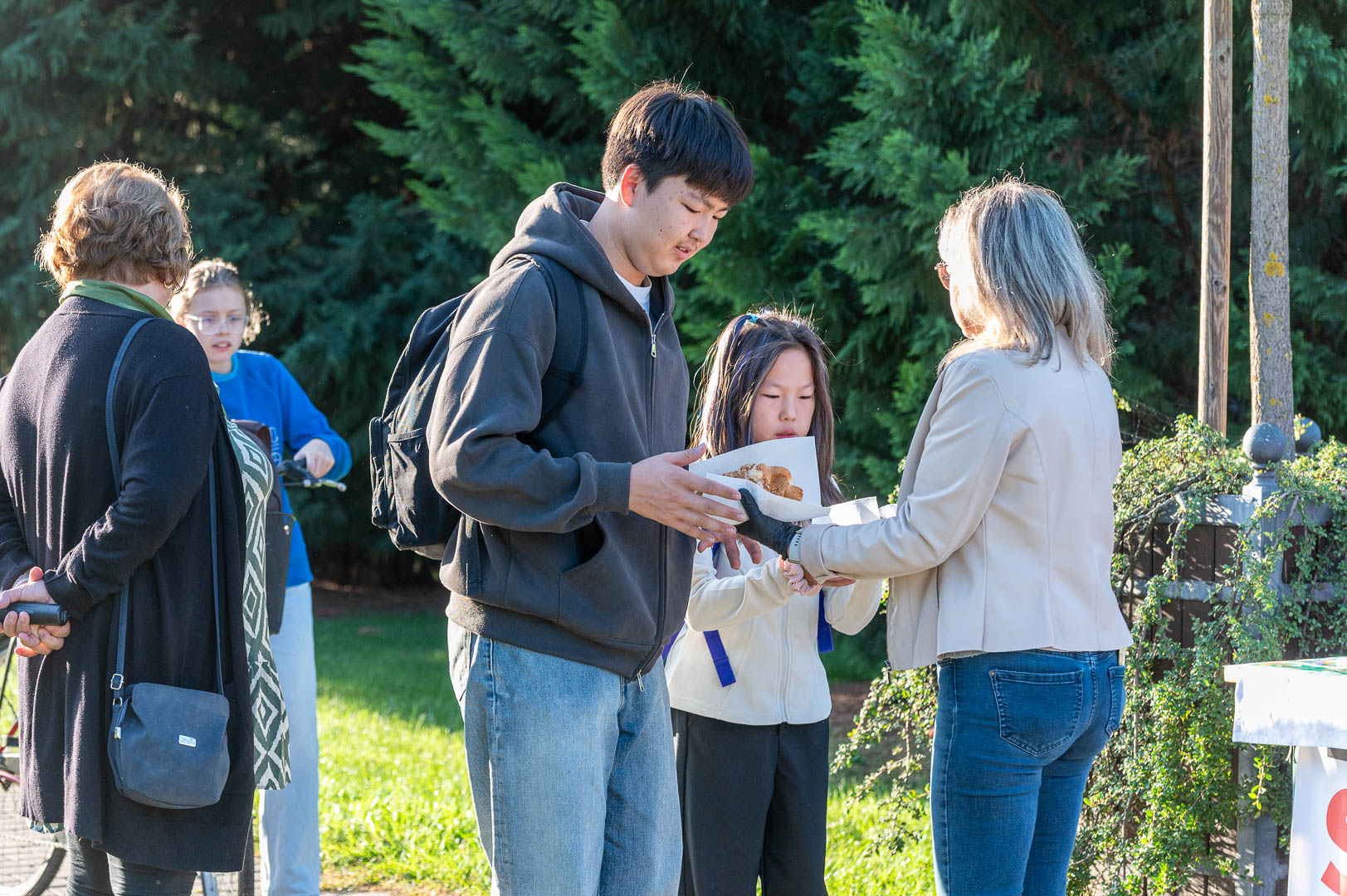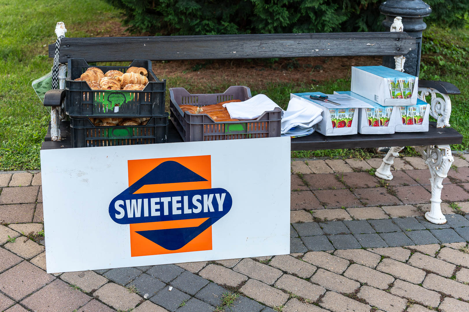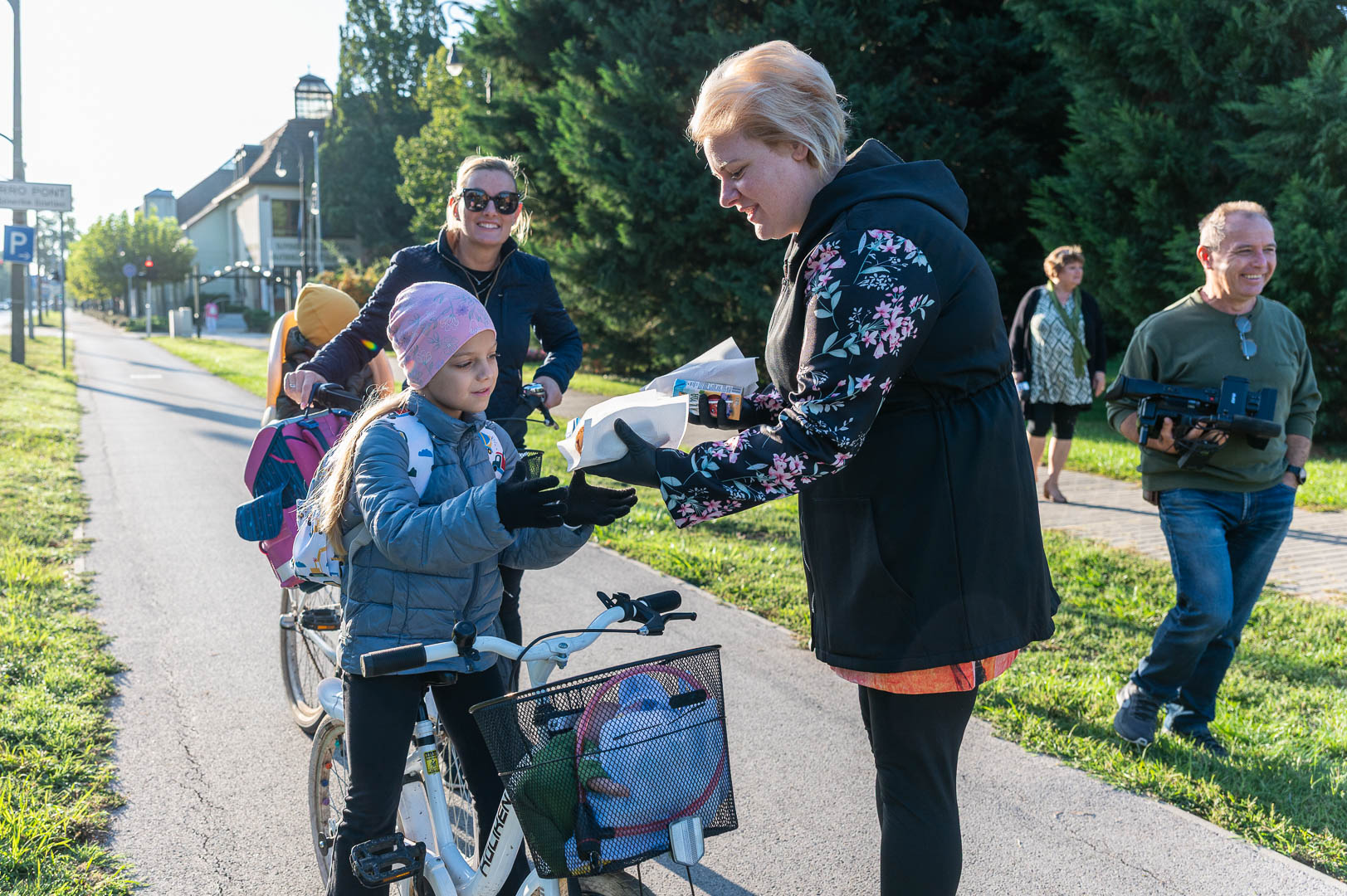 A mai reggelit Hodálik Pál polgármester nyitotta, majd munkatársai segítségével szétosztotta azokat a pékárukat, illetve gyümölcsleveket, amiket a Strabag és a Swietelsky cégek támogatásával szereztek be.