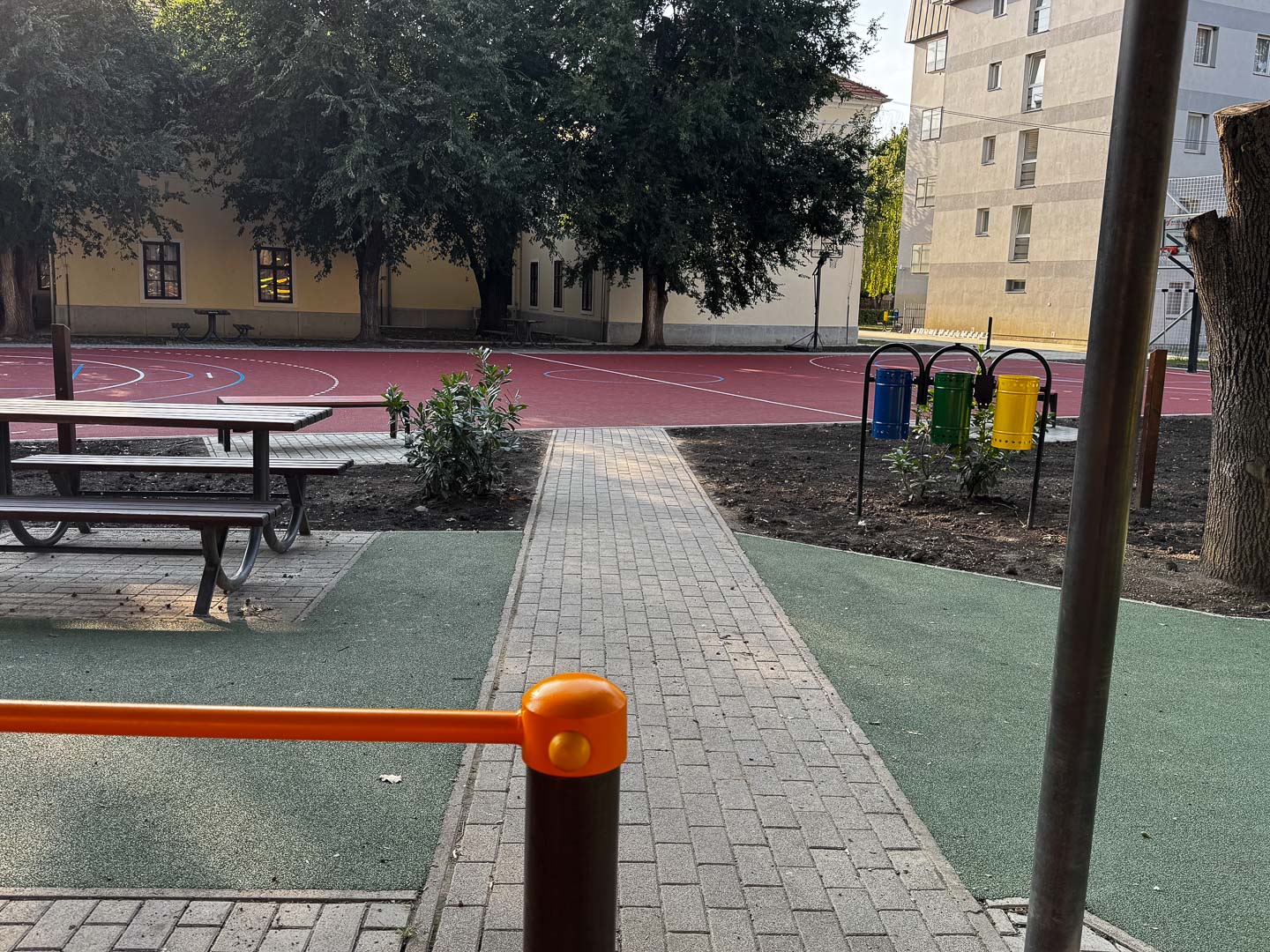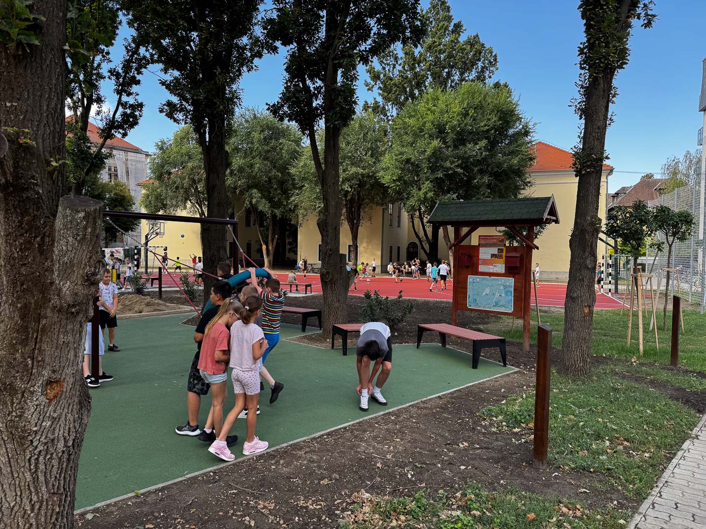 Elbontásra, majd újjáépítésre került a rekortán burkolatot kapott sportpálya, bruttó harmincöt millió forint értékű beruházás keretében, amely a testnevelés órák mellett a kosárlabda és labdarúgás intézményi sportcsoportjainak, utánpótlás nevelésének feltételrendszerét javítja. E mellett mind a Gyakorlóintézmény, mind a pedagógusképző kar testnevelés óráinak feltételrendszerét javítja a beruházás a campuson belül. Régi adóssága volt az intézménynek, hogy az iskolai játszóudvar felújításra kerüljön, ennek megvalósítása korábban is az intézményi fejlesztési stratégia kiemelt része volt. A teljes iskolai játszóudvar rekortán burkolatot kapott, bruttó harmincöt millió forint értékben. Felújításra került az intézmény kondicionáló parkja, mintegy br. kétmillió forint fejlesztési összeggel, és további játszótéri elemek cseréje valósulhatott meg. Az udvar játszó- és sportrészének teljes parkosítása történt egymillió forint értékben. A fejlesztés keretében új kerékpártároló került kialakításra, amely beruházás br. hárommillió forint értékben valósult meg. Szelektív hulladékgyűjtő pontok kerültek kialakításra, és új kiülő szigeteket alakított ki az intézmény, kulturált intézményi környezetet kialakítva, nem csupán a Gyakorlós gyermekek számára, de az egyetemi hallgatóink részére is. A „B” oktatási épületben négy tanterem felújítása valósult meg a nyár folyamán, korszerű tanulási környezetet kialakítva a tanulók és egyetemi hallgatók részére.