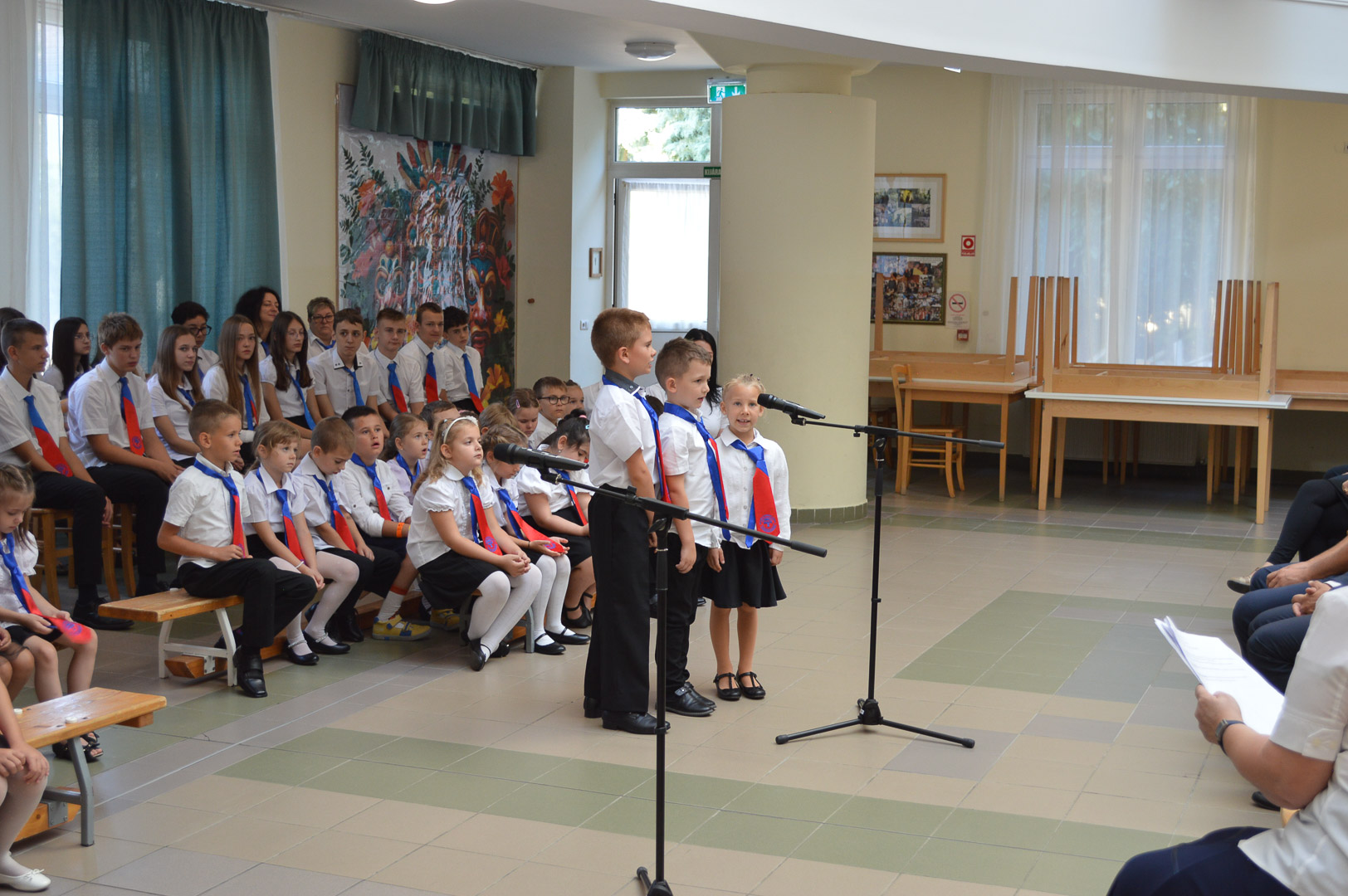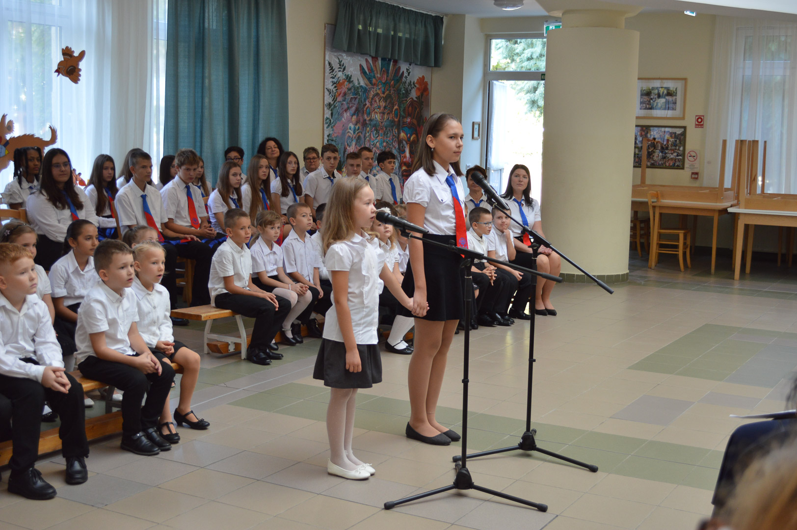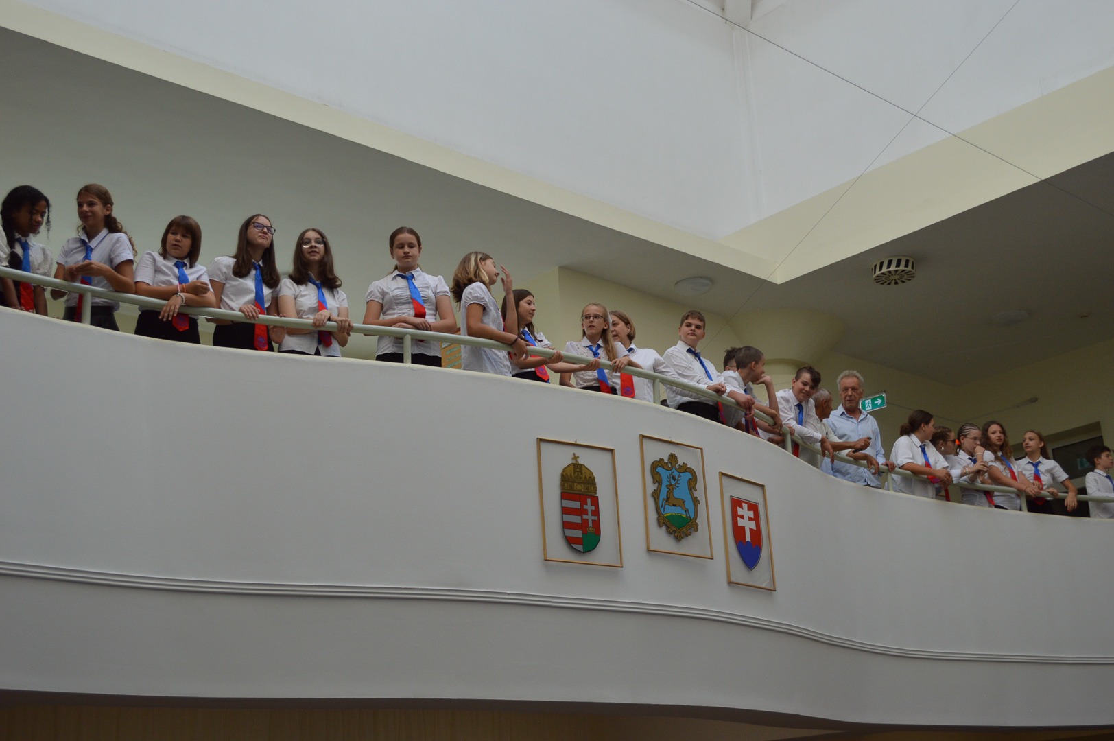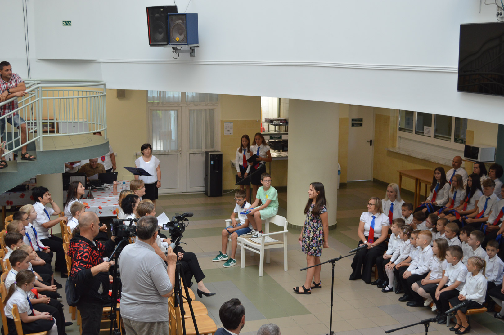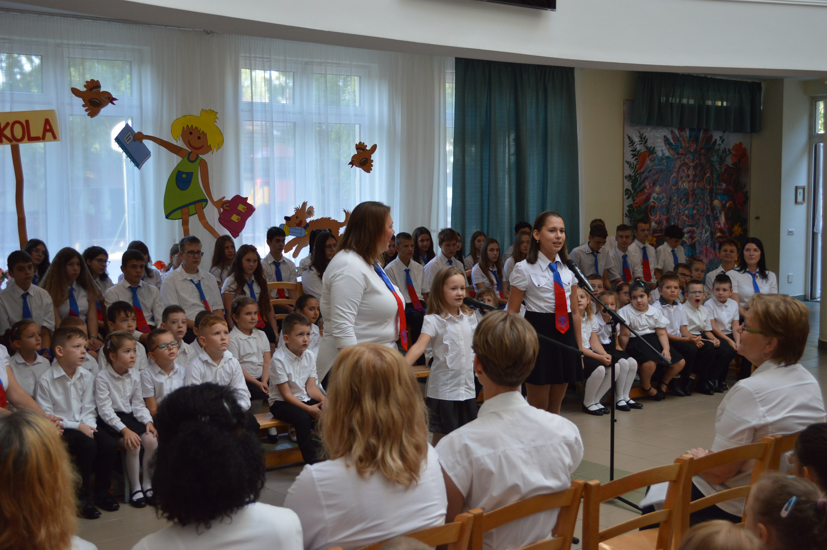 Igazgató asszony nagy szeretettel és örömmel köszöntötte az első osztályosokat, akik ma hivatalosan is átlépték a szlovák iskola kapuját, hogy megkezdjék általános iskolai tanulmányaikat. A mai nappal hosszú útra indulnak el a gyerekek, aminek végén kíváncsi, tudásvággyal teli 14 éves „kisfelnőttek” haladnak majd tovább, hogy tanulmányaikat már középiskolásként folytassák tovább. Igazgató asszony megköszönte az első évfolyamosok szüleinek azt a bizalmat, amit a szlovák iskola pedagógusai iránt éreznek. Biztosította őket afelől, hogy itt minden nap gyermekszerető, kreatív és lelkiismeretes kollégák foglalkoznak majd gyermekeikkel.