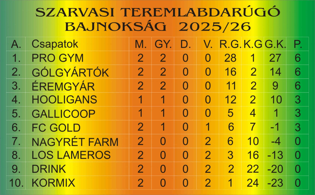 Góllövőlista: 12: Kajtár(Pro Gym), 7: Takács(Gólgyártók)