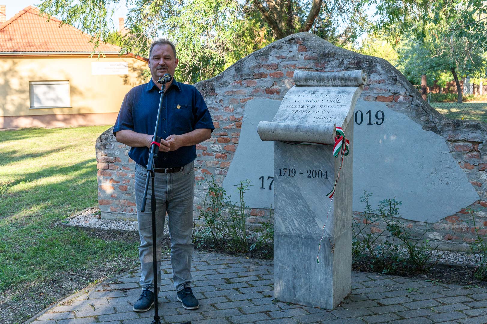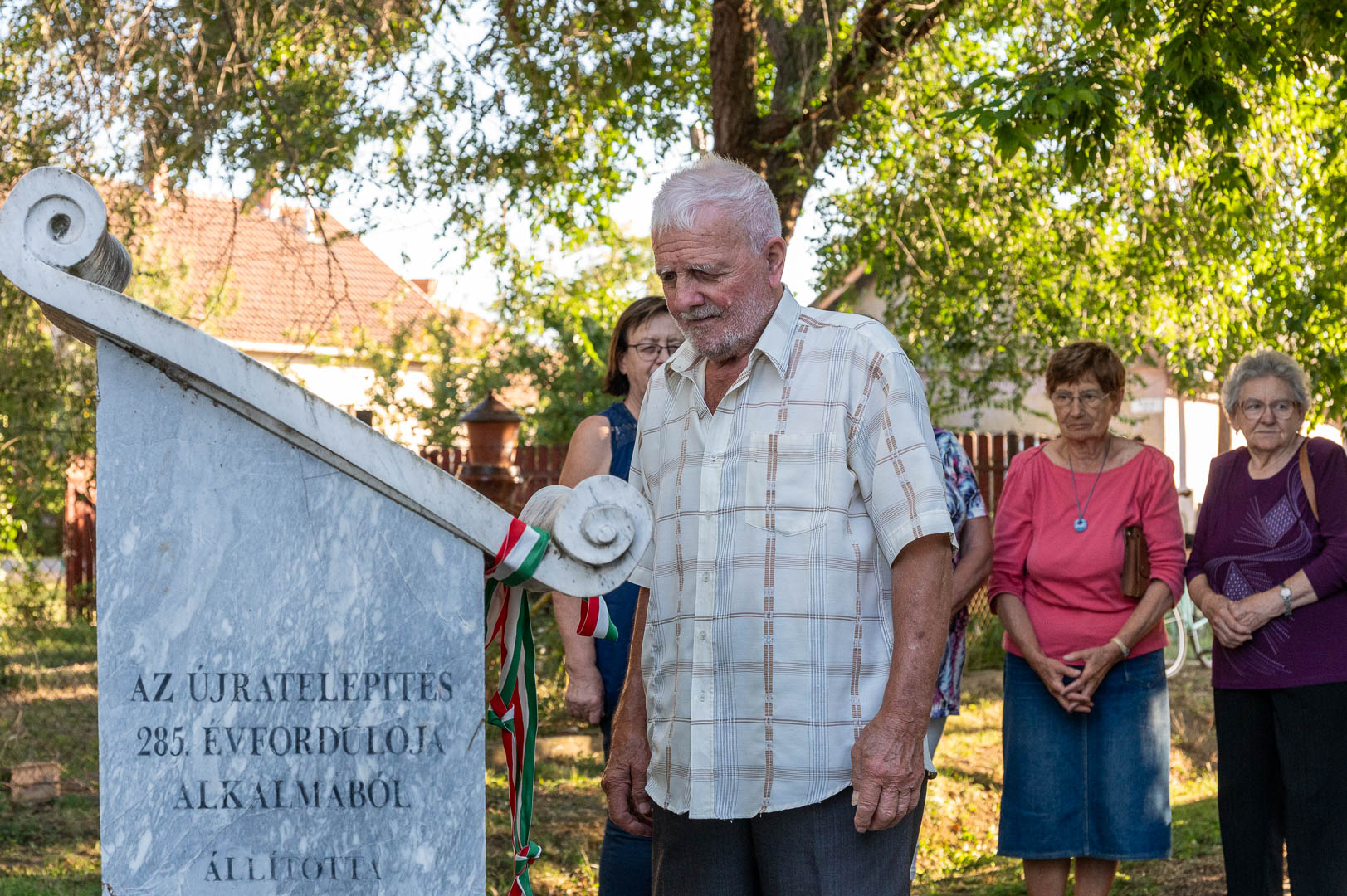 Hévizi Róbert elsőként arra hívta fel a figyelmet beszédébe, hogy a község újratelepítésének több mint három évszázados múltja fontos sarokpont a település történetében. Az emlékművet 2004-ben állították, azzal a szándékkal, hogy méltó helyszínt biztosítson a hagyományőrző megemlékezéseknek. Azóta minden év szeptember harmadik hétvégéjén összegyűlnek itt az emberek, hogy tisztelegjenek az elődök munkája előtt.
