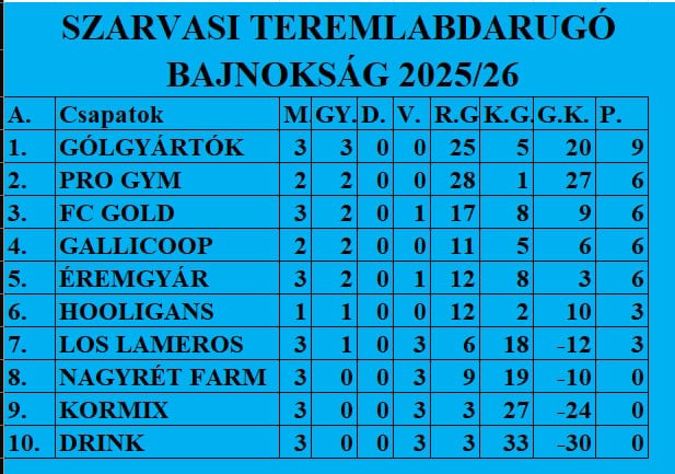 Már a harmadik körnél tart a Szarvasi Teremlabdarúgó Bajnokság sorozata.
