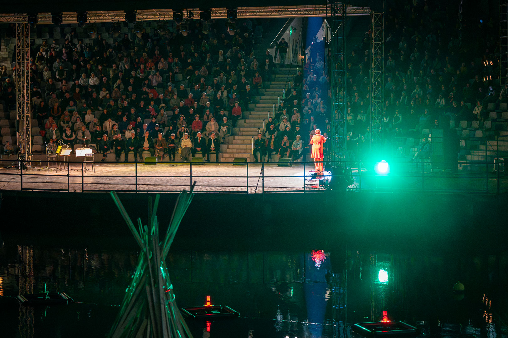 Hagyományosan szeptember végén a Szent Mihály-napi tűzgyújtással zárul a Szarvasi Vízi Színház kapuja. Így történ ez szombaton, amikor a hirtelen lehűlt levegő ellenére jó félháznyi közönség jött el a Körös partjára.