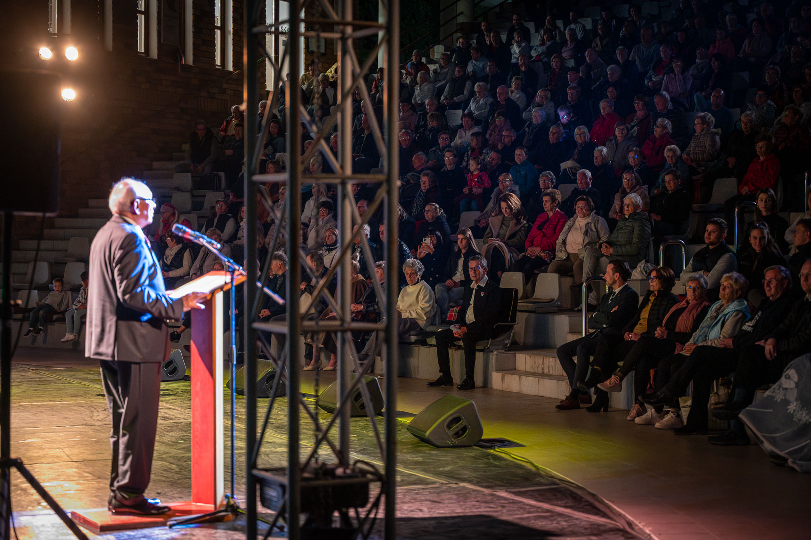 A városvezetés részéről dr. Bartolák Csaba alpolgármester a közösségek, azon belül a kis közösségek fontosságát hangsúlyozta. Az utána szóló Babák Mihály, a város korábbi polgármestere, díszpolgára két, maximum három percet kapott Bődi Jánostól. Nem sikerült tartania. Időnként visszatekintve az emlékezete szerinti múltra köszönte meg minden szervezőnek és adományozónak, hogy a Napkorongos Csodaszarvas szobra elkészülhetett.