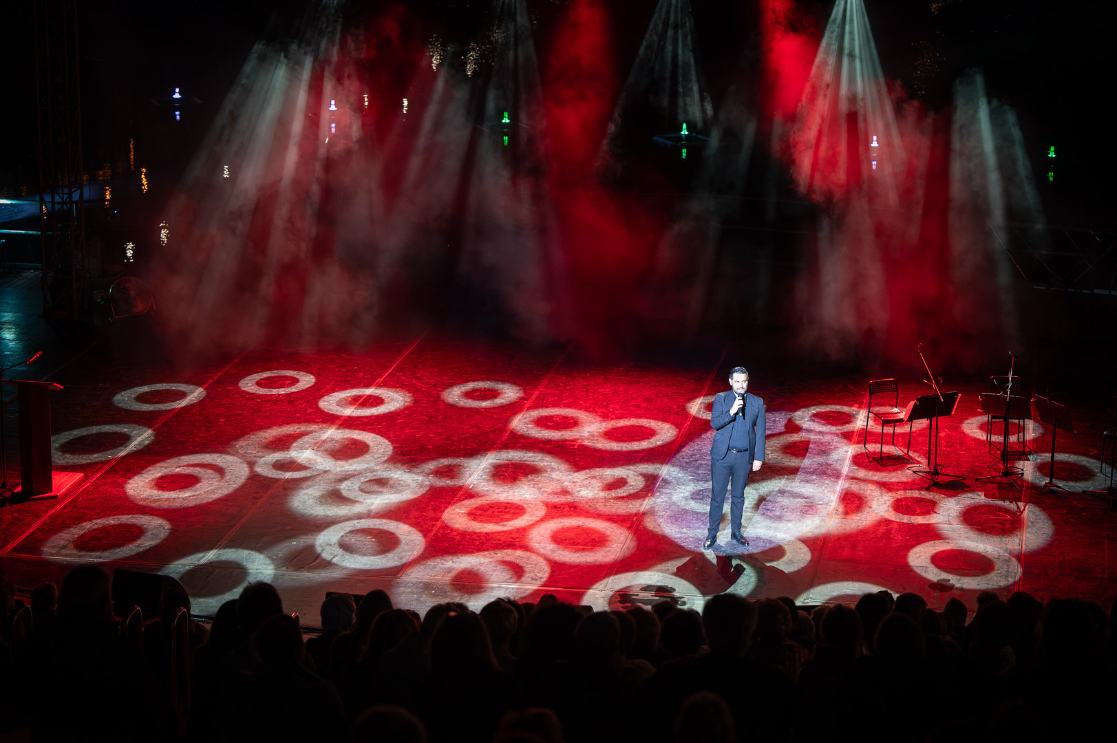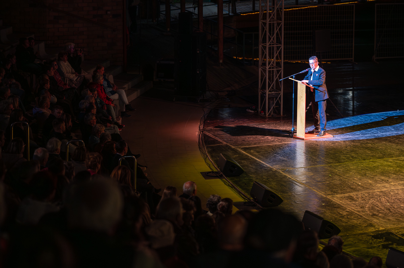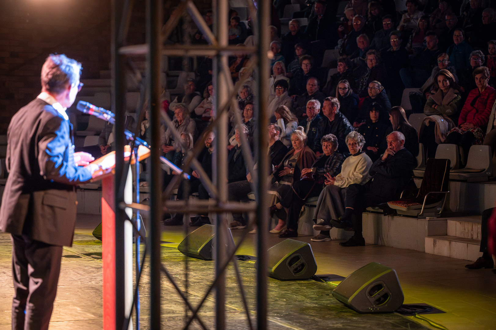 A közönséget Pártai Lucia köszöntötte, illetve tájékoztatta az este történéseiről. Elsőként Szarvas Város Barátainak Köre elnökét, Bődi Jánost, Szarvas város díszpolgárát kérte fel, köszöntse a nézőtéren ülőket. Az INTEGRÁL Építő Zrt. nyugalmazott vezérigazgatója többszörösen illetékes volt az első szóló jogára: ő volt a fő mozgatórugója, illetve az általa vezetett egyesület, valamint építőipari cége volt a Napkorongos Csodaszarvas szobor állításának fő támogatója.