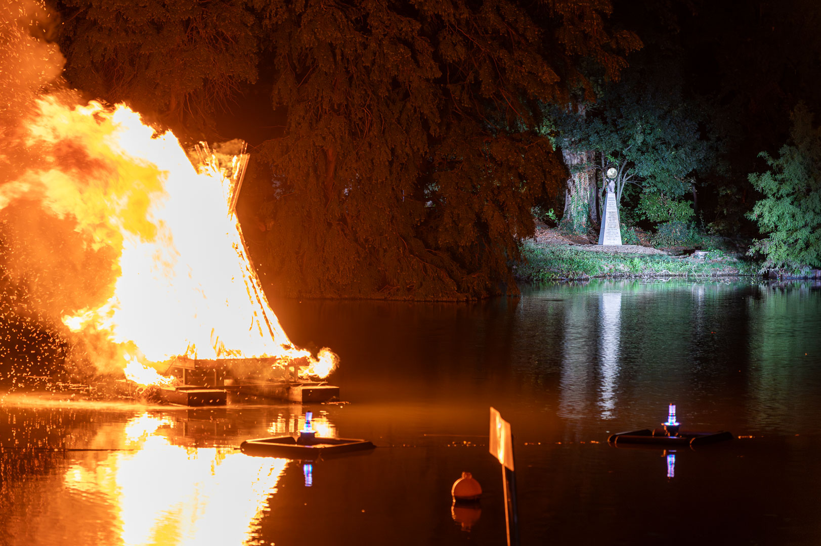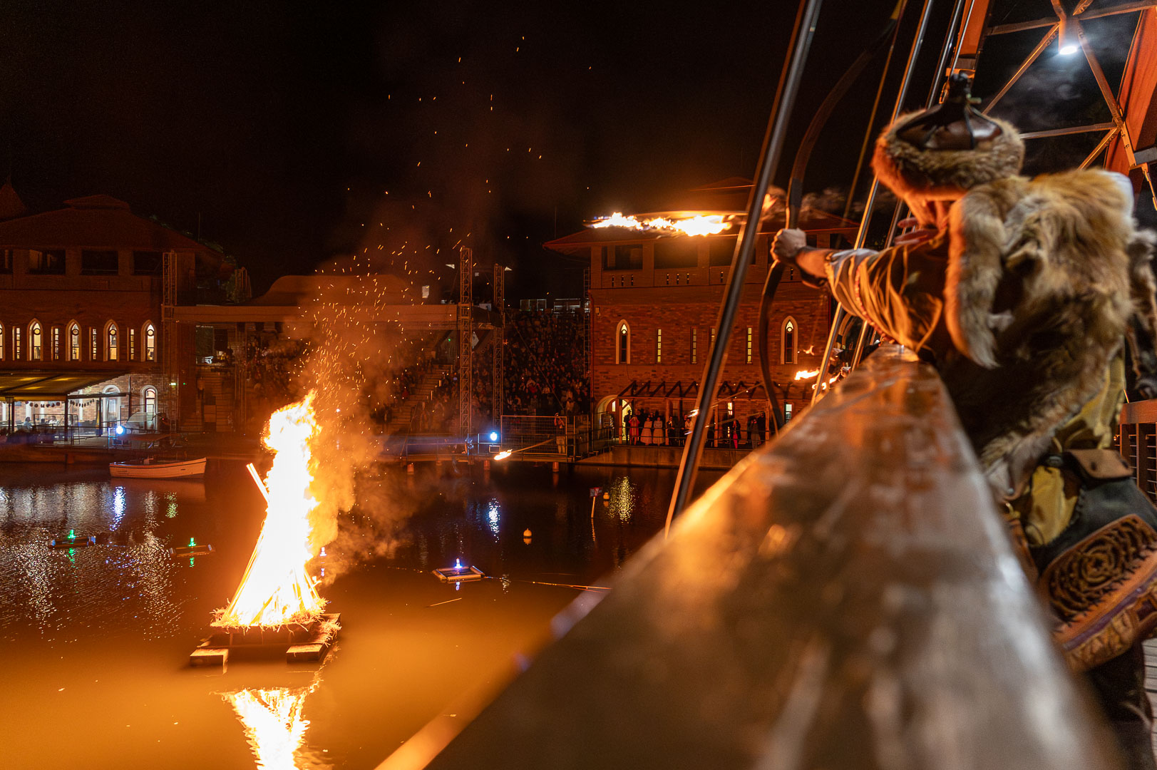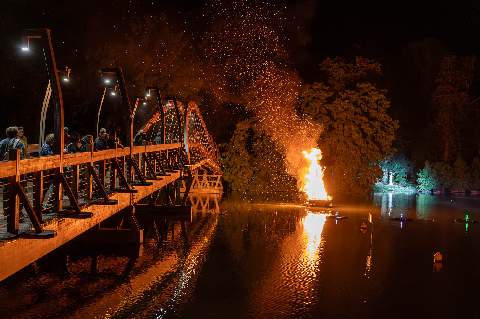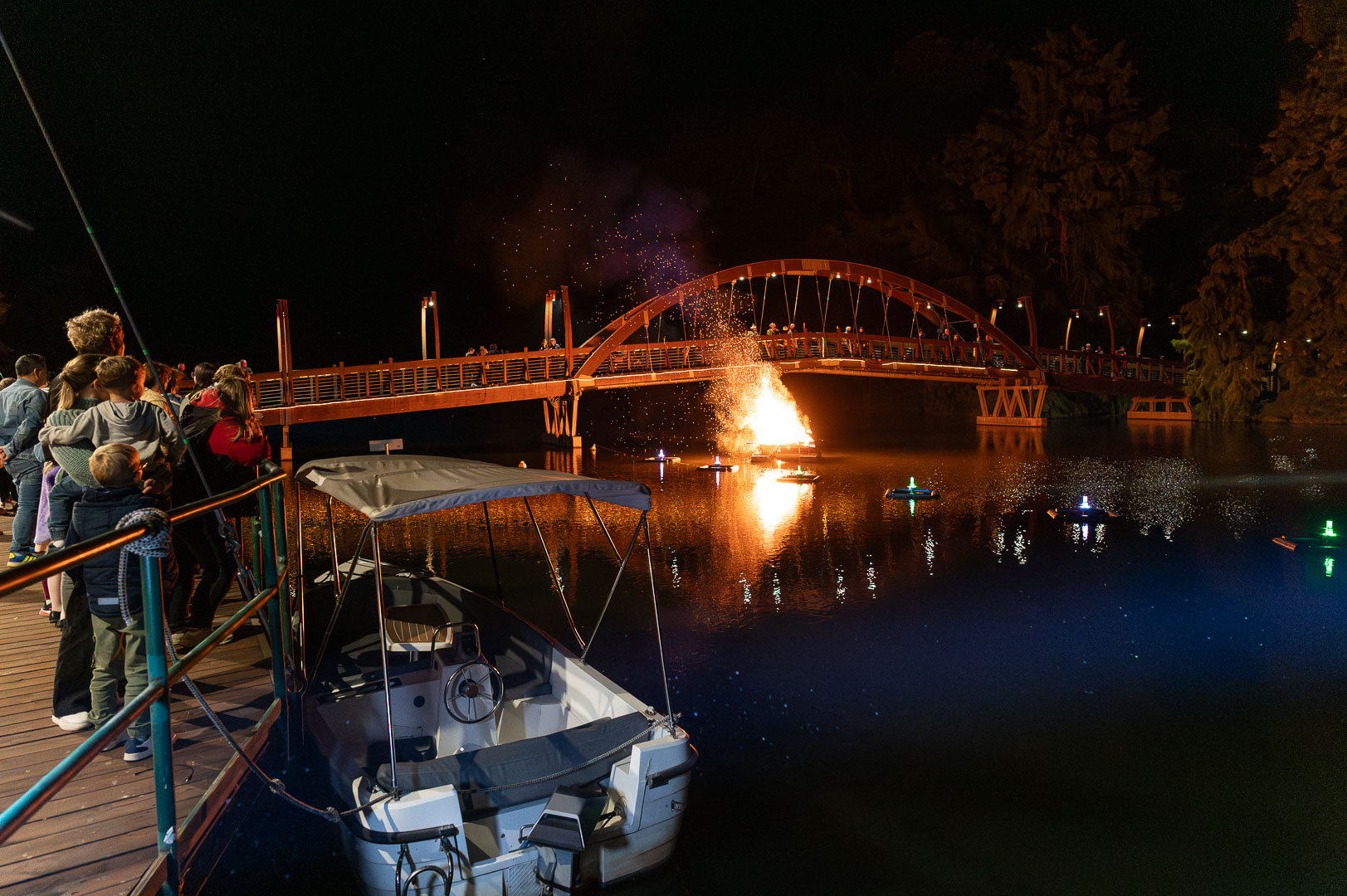 Az estét a Körös medrébe épített máglya meggyújtása zárta. Ezt a Kétegyházi Turul Íjászok csapata az idén az első sorozattal sikerrel végezte el.