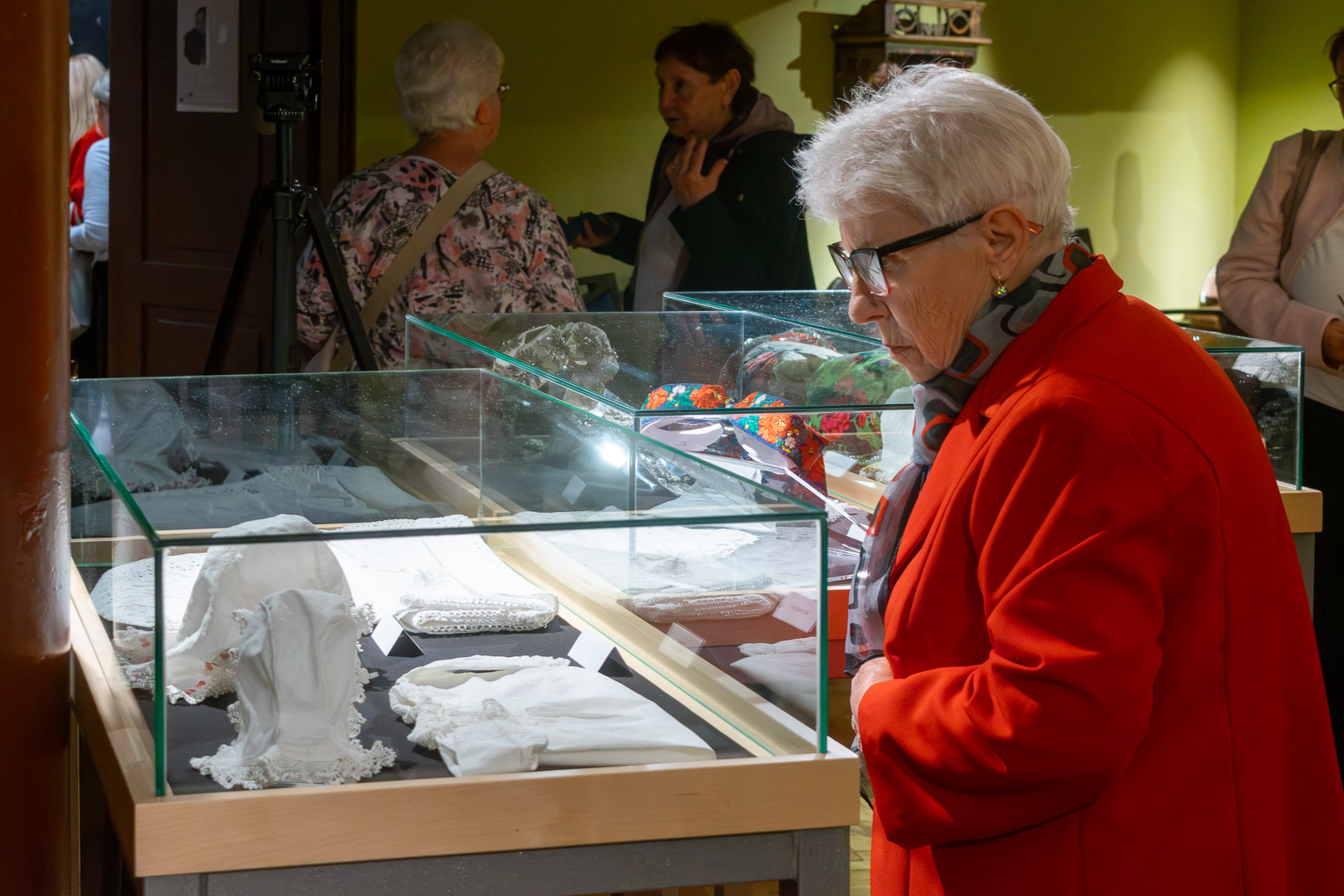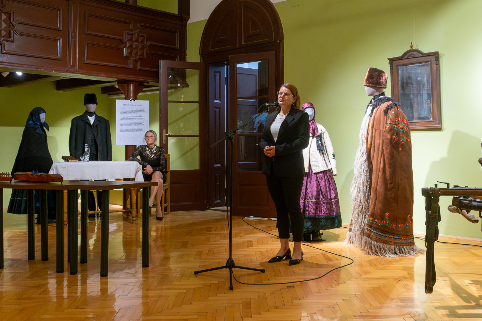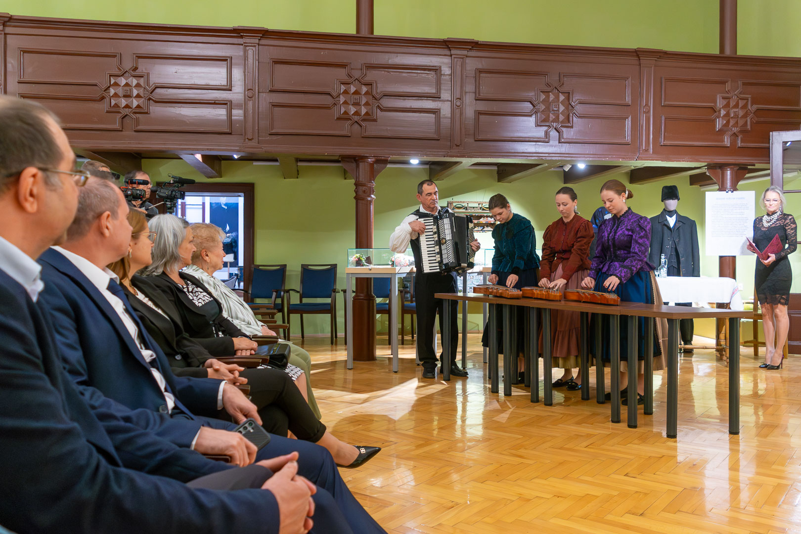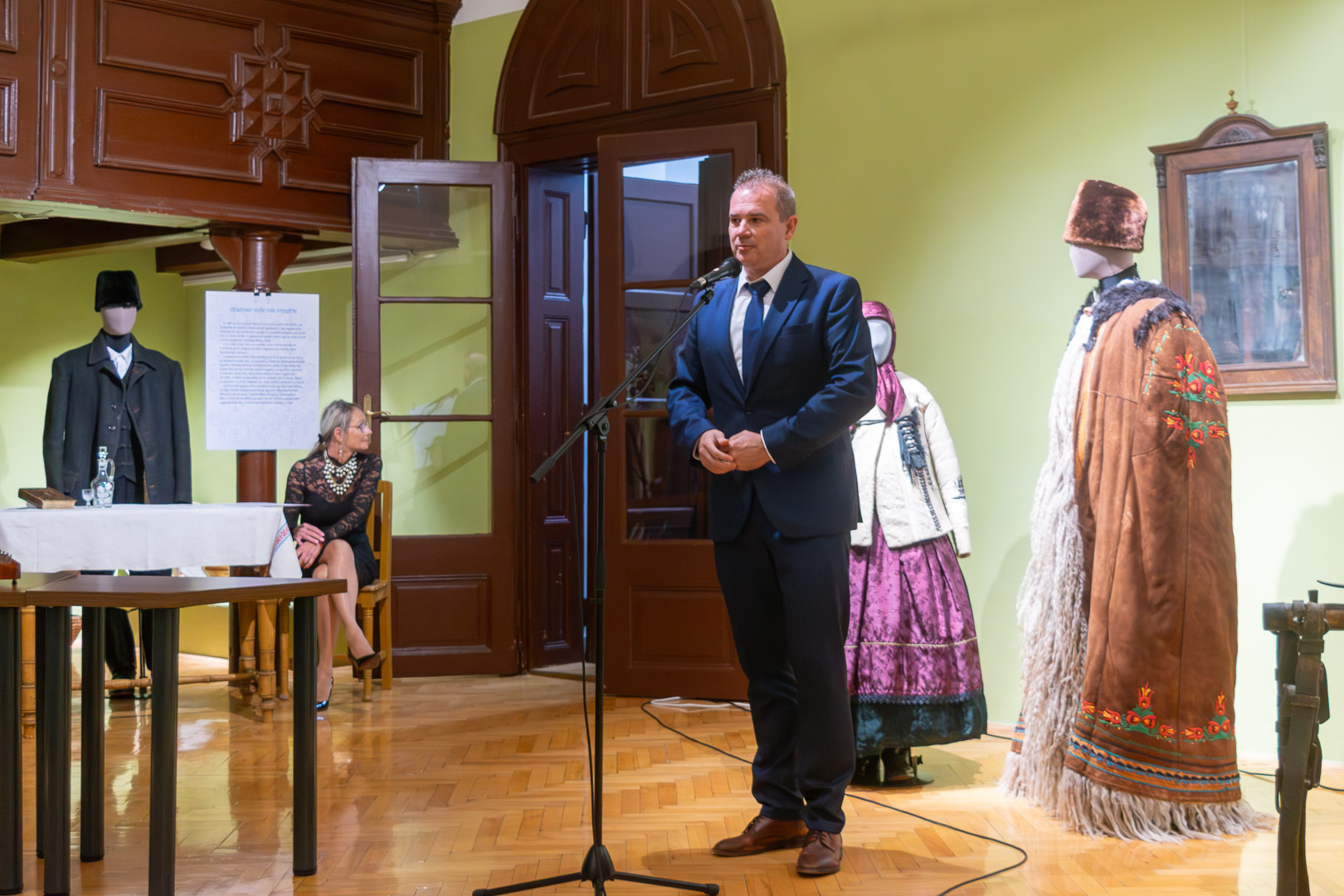 Csasztvanné Vass Edit – szintén citerával kísért – népdalcsokra után dr. Filus Erika beszélt a kiállítás értelméről és jelentőségéről, ami nem más, mint hogy a kiállított bábuk úgy néznek ki, mint az igazi emberek, ami nemegyszer megtréfálta őt a kiskőrösi tárlat alkalmával. Reményét fejezte ki, hogy a hajdani ruházat nem csak a múzeumba kerül vissza – bár az is nagyon fontos –, hanem az ünnepnapi/mindennapi használatba is népdalkörösök, néptáncosok, magángyűjtők jóvoltából. – Mutassuk meg, hogy ez egy élő kultúra! – szólította fel a közönséget Filus Erika.