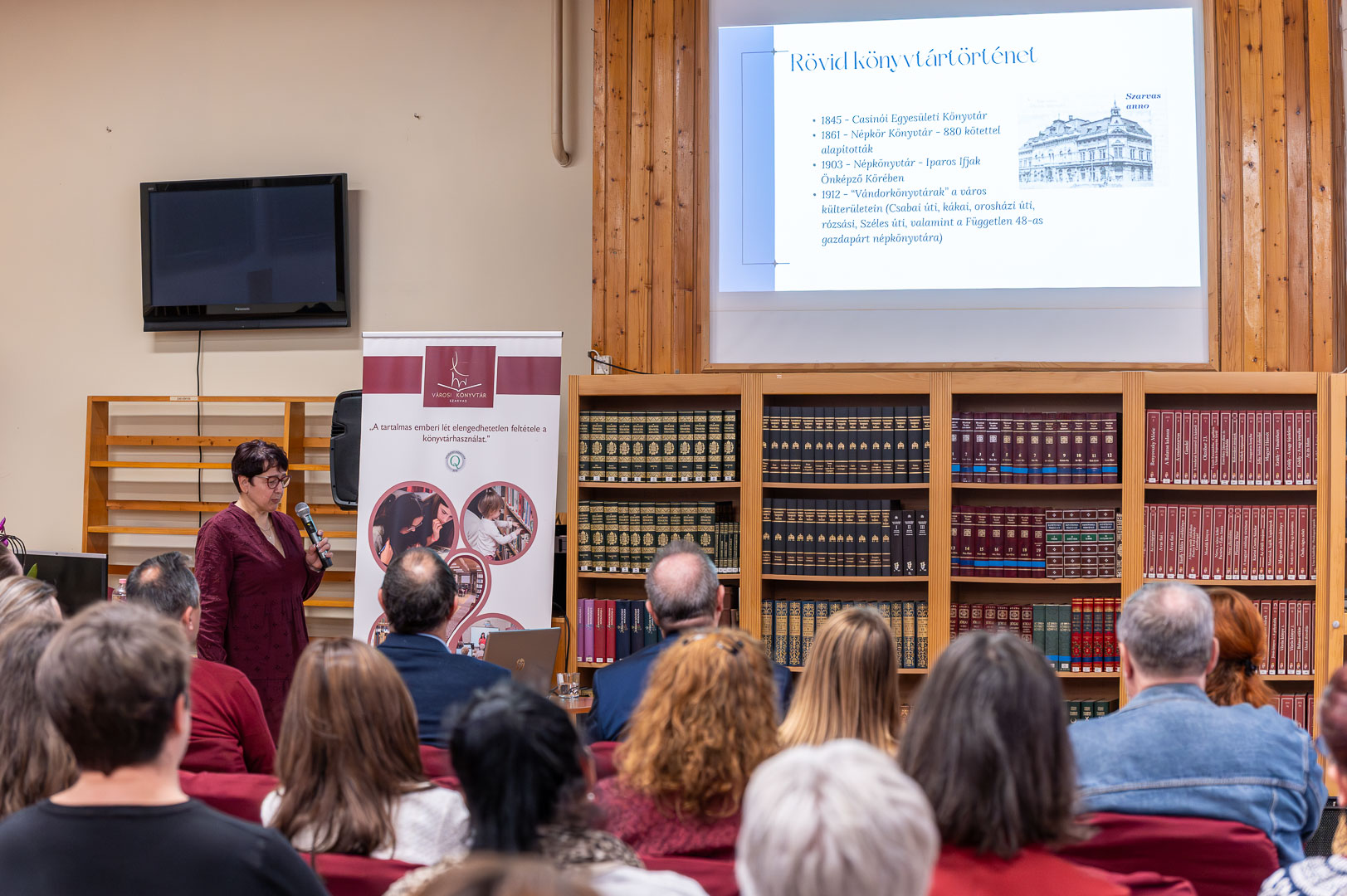A szakmai nap előadásainak sorát a házigazda könyvtárigazgató, Molnárné Pető Beáta nyitotta, 70 éve az olvasókért című prezentációjával. Ebből elsősorban kiderült, hogy Szarvason már 1845-ben volt a Casino Egyesületnek könyvtára, ők alapításukat az első tanácsi fenntartású népkönyvtár 1955. november 3-án megnyitott leltárkönyvében tett bejegyzésre vezetik vissza. Szó volt ezt követően a könyvtár különböző korszakairól, amikor sokszor változtak a körülmények, a feltételek, az igazgató személye, egy valami nem változott, hogy a könyvtárosok az olvasók kiszolgálását tartották mindig elsődleges feladatnak. Bemutatta a könyvtár szolgáltatásait, klubjait, állandó rendezvényeit és honlapját, a social médiában való jelenlétét. Végezetül a legutóbbi felújítási programról szólt, aminek következtében 2025. május 27-én nyitott ki ismét, megújult és modernizált Szarvasi Városi Könyvtár.