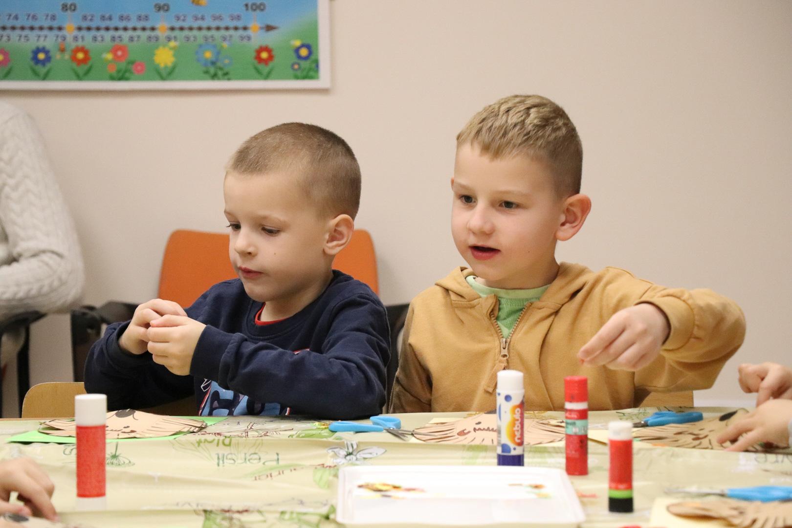 Már csak pár hét és vége lesz az ősznek. A természet most készül fel a hosszú, hideg télre. A színes, lehulló levelek és termések kupacaiban azonban megbújik valaki! November 18-án, idei első iskolára hangoló játszóházunkban a kíváncsi gyerekekkel közösen kutattuk, kerestük, hogy ki lehet az?!  A levelek, termések alatt meleget kereső kicsi állatot gyorsan megtaláltuk! Egy kis szúrós gombóc lapult a levelek alatt! Hosszú téli álma előtt még egy jó nagy kalandra indult velünk. Így rögtön megismerkedtünk vele is, és egymással is. Memóriajátékban a párját is megtaláltuk az interaktív táblán, majd pihenésképpen meghallgattuk Sün Balázs történetét. A mese után sok-sok ügyes kis kézre volt szükség, hiszen mindenki elkészíthette saját sünijét.