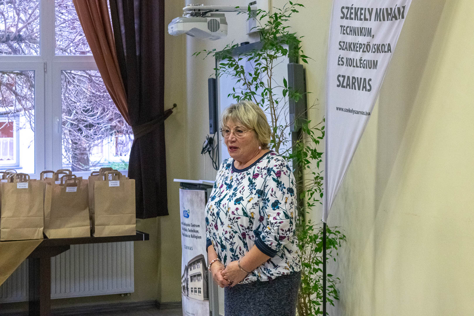 Kilencedik alkalommal rendezte meg versmondó versenyét a Szarvasért Alapítvány november 14-én, pénteken a GySZC Székely Szakképző Iskola könyvtárában. A járási versenyre bejutó intézmény-győztes versmondókat és kísérőiket előbb Ozsváth Zsuzsanna a házigazda intézmény pedagógusa köszöntötte, tolmácsolva az iskola igazgatójának, Varga Angélának üdvözletét is. Závogyán Judit, a Szarvasért Alapítvány kuratóriumának elnöke is nagy szeretettel üdvözölte a szarvasi, kondorosi, csabacsűdi, békésszentandrási versenyzőket, leszögezve, hogy aki idáig eljutott, máris győztesnek érezheti magát, hiszen intézményében kiválóan szerepelt és biztos, hogy senki se megy haza üres kézzel erről a versenyről sem. Ismertette, hogy az idei kiírásban Szabó Lőrinc költészetét helyezte a középpontba az alapítvány, s remélte, hogy mindenkinek sikerült a gazdag életműből a személyiségéhez, egyéniségéhez leginkább illő költeményt kiválasztani. Farkas Tamás, a Szarvasi Önkormányzat Oktatási és Kulturális Bizottságának elnöke minden résztvevőnek jó versenyzést kívánt és köszönte, hogy elvarázsolják a hallgatóságot ezen a délutánon a versekkel. Dankó Béla országgyűlési képviselő és Hodálik Pál polgármester nevében is jó versenyzést – szívből jövő versmondást és csodálatos élményt – kívánt mindenkinek. Ezután következett a zsűri bemutatása. Óvodás kategóriában Ozsváth Zsuzsanna elnök, Závogyán Zsófia és Harmati Ágnes, általános iskolás alsó tagozatos kategóriában Brachna Irén elnök, Bencsikné Kurucz Klára és Bődi Etelka, általános iskolás felső tagozatos kategóriában Salka Zsuzsanna elnök, dr. Katona Krisztina és Bartolákné Szabó Éva, középiskolás kategóriában Sutyinszky Zoltán elnök, Tóth Tímea és Bracsok-Ajtai Andrea egyetemista kategóriában Hegedűs Éva elnök, Farkas Tamás és Závogyán Judit figyelte és értékelte a produkciókat. A verseny a különböző kategóriákban párhuzamosan zajlott az első emeleti termekben, az eredményhirdetés előtt pedig megkóstolhatták a jelenlevők a székelyes tanulók készítette süteményeket, s más finom falatokat. A versenyen a következő eredmények születtek: