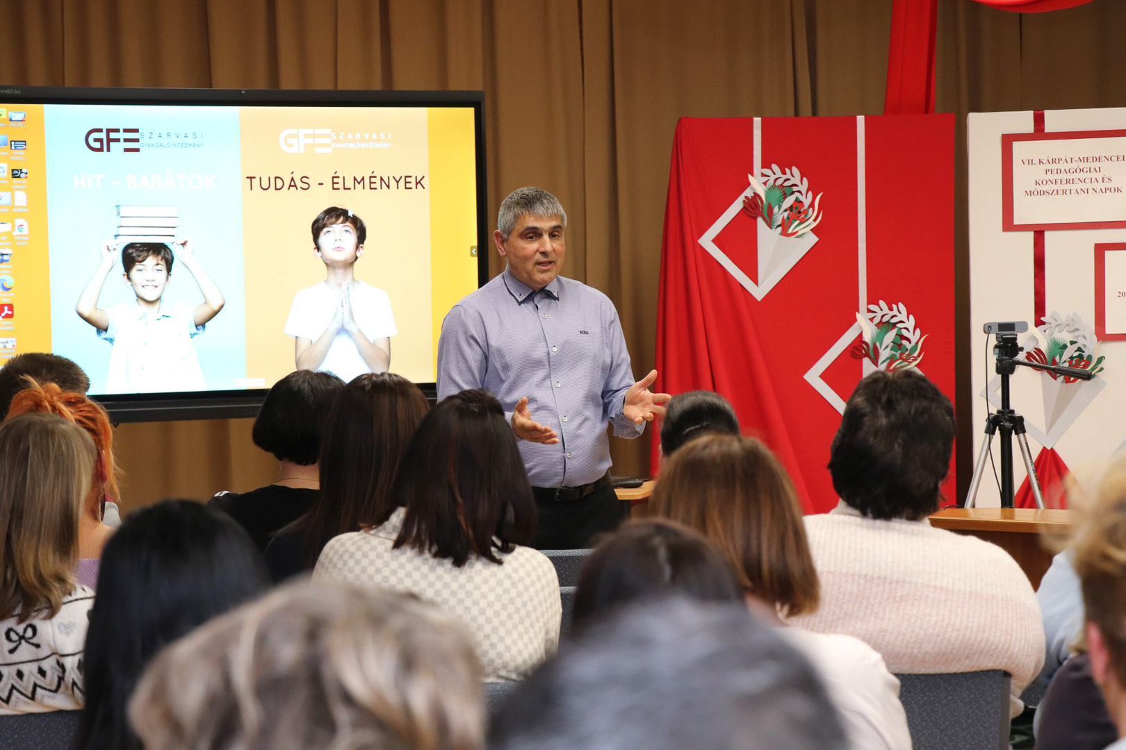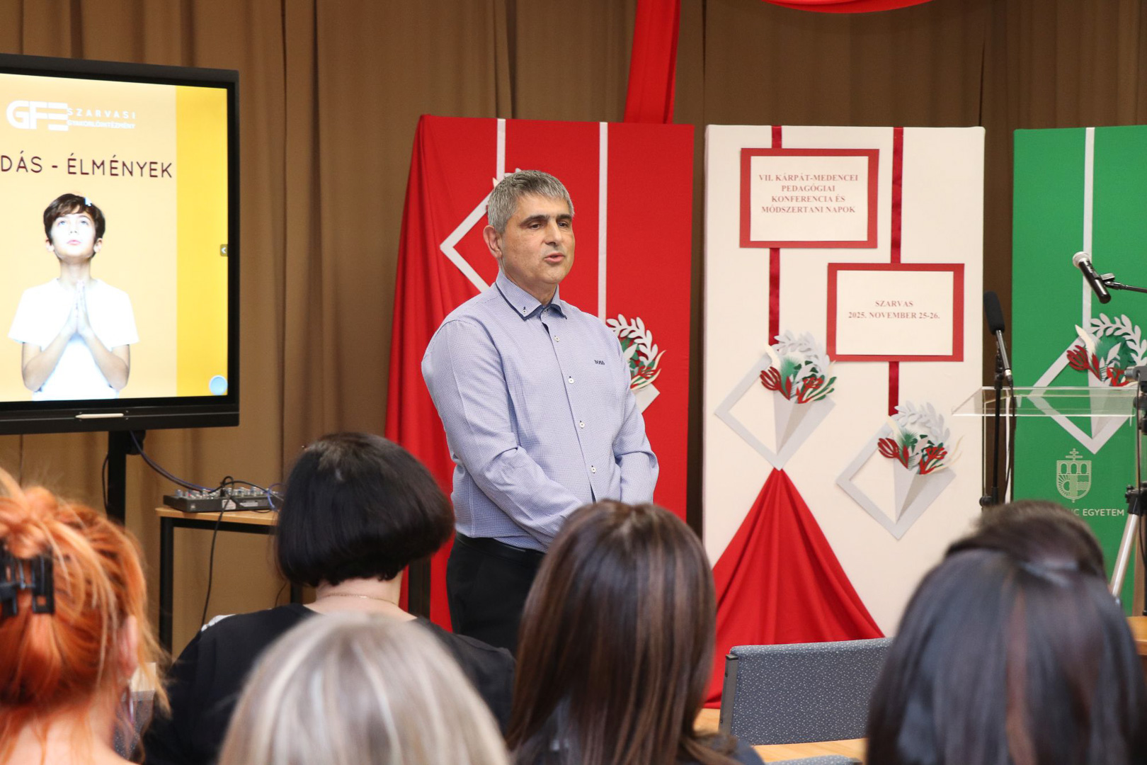 A VII. Kárpát-medencei Pedagógiai Konferencia és Módszertani Napok nyitóprogramjaként 2025. november 25-én a GFE Szarvasi Gyakorlóintézményének előadóterében került megrendezésre a Szülők Akadémiája tudományt népszerűsítő programja. Dr. Kelemen Lajos pszichológust Bíró Gyula főigazgató, c. egyetemi docens a GFE PK Gyermeknevelési és módszertani tanszékének oktatója köszöntötte a program szervezői nevében. A résztvevő mintegy százharminc érdeklődő szülő és pedagógus, egyetemi hallgató a tudomány ünnepe programsorozat szarvasi campus rendezvényeibe illeszkedett. A teltházas rendezvényt a GFE pedagógusképző kara, az OH Békéscsabai POK és az egyetem gyakorlóintézménye az Energiaügyi Minisztérium támogatásával szervezte. Dr. Kelemen Lajos előadásának fókuszában az okoseszközök használatának hatása a személyiségfejlődésre állt, és érzékeltette azt a Bíró Gyula által felvetett kettősséget, ami a negatívumokra, de emellett a pozitívumokra is mutat. A tudatos szülői jelenlét, felügyelet, a korlátok felállítása, a kiegyensúlyozottság több aspektusát hallhatták a résztvevők. A figyelem, a szociális készségek, a kreativitás romlása, a szorongás és függőség kialakulása mellett az oktatásban rejlő potenciál is megfogalmazódott… a mértéket középpontba állítva. Az előadó szellemes és szórakoztató stílusa néhol „görbetükröt” állított a szülők és pedagógusok, a gyakorló szakemberek elé is, de mindig megfelelő mentális megerősítést és támogatást nyújtva. A közös történetben.