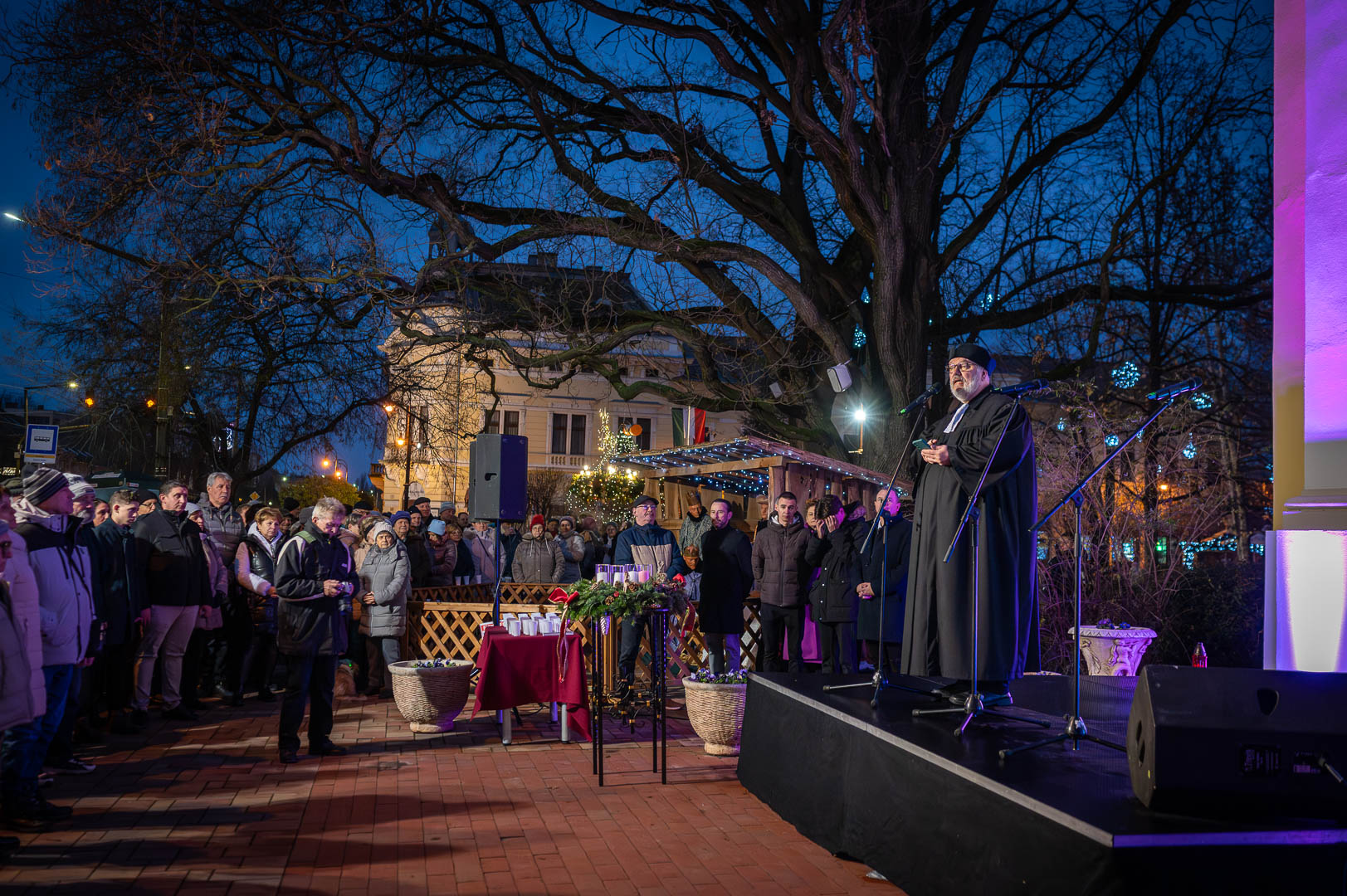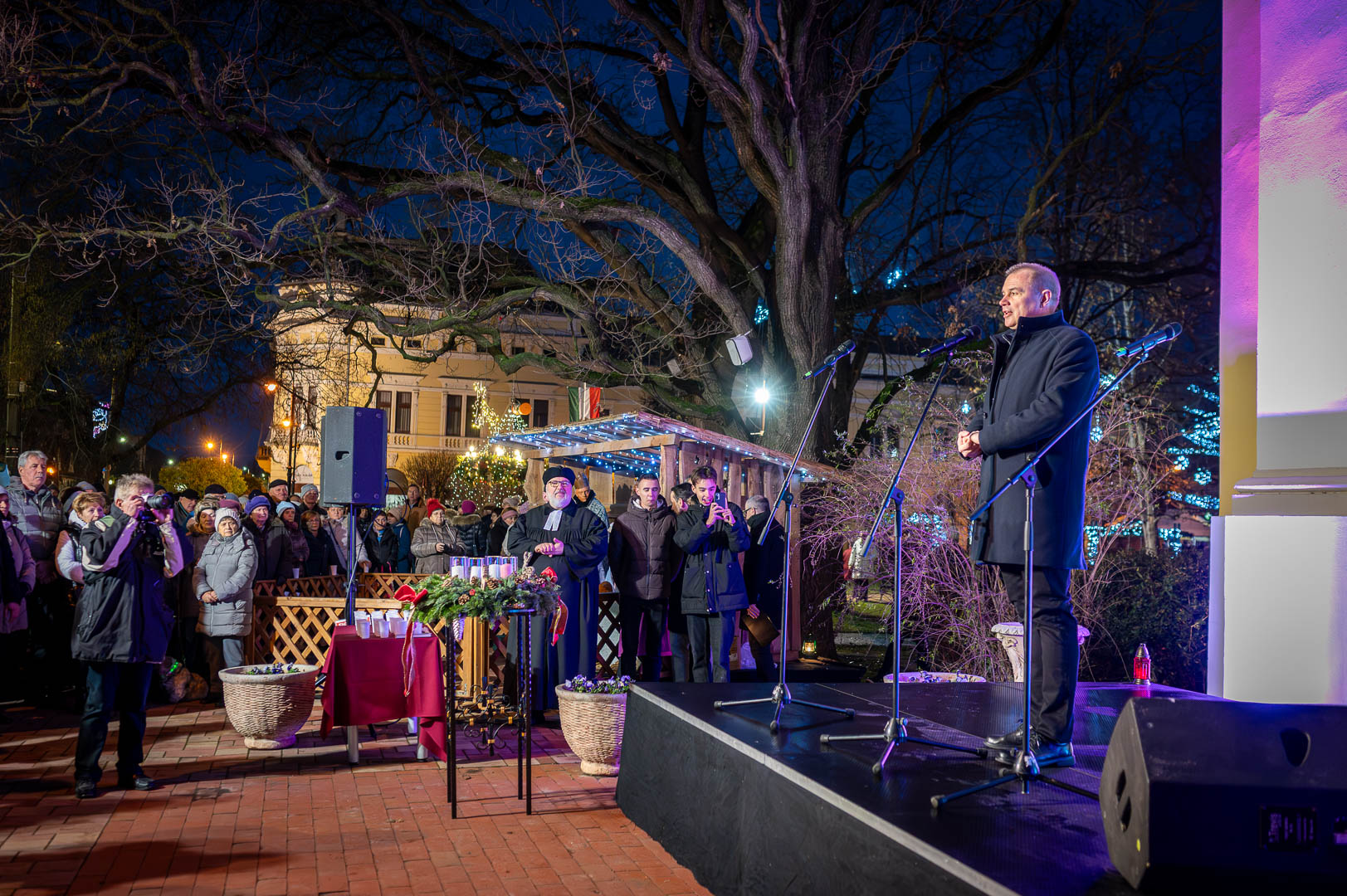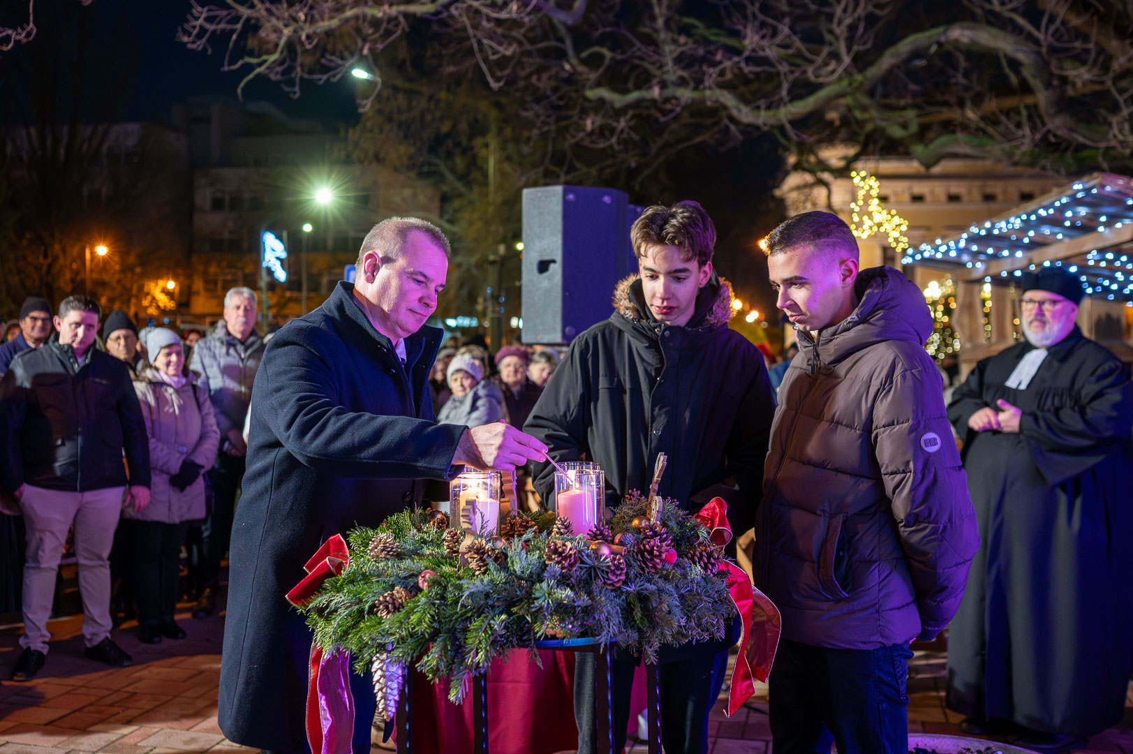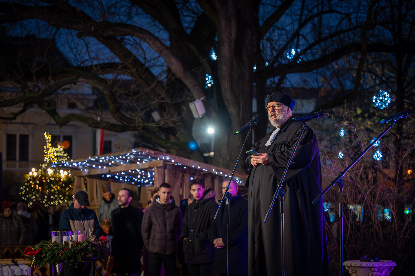 Horváth Z. Olivér evangélikus lelkész beszédében az öröm vasárnapjának üzenetét bontotta ki. A Filippibeliekhez írt levél szavait idézve – *„Örüljetek az Úrban mindenkor”* – arra emlékeztetett, hogy a valódi öröm forrása nem az ünnep külsőségeiben, hanem Isten közelségében rejlik. A karácsonyhoz közeledve gyakran érezzük a tökéletesség iránti kényszert, ami sokszor inkább hiányokat és veszteségeket nagyít fel bennünk. Az ünnep lényege azonban nem a hibátlan díszítés, hanem az, hogy Isten a maga egyszerűségében, Betlehem szerény istállójában érkezett el hozzánk, hogy a szívünkben hozza el a világosságot és a gyógyulást.