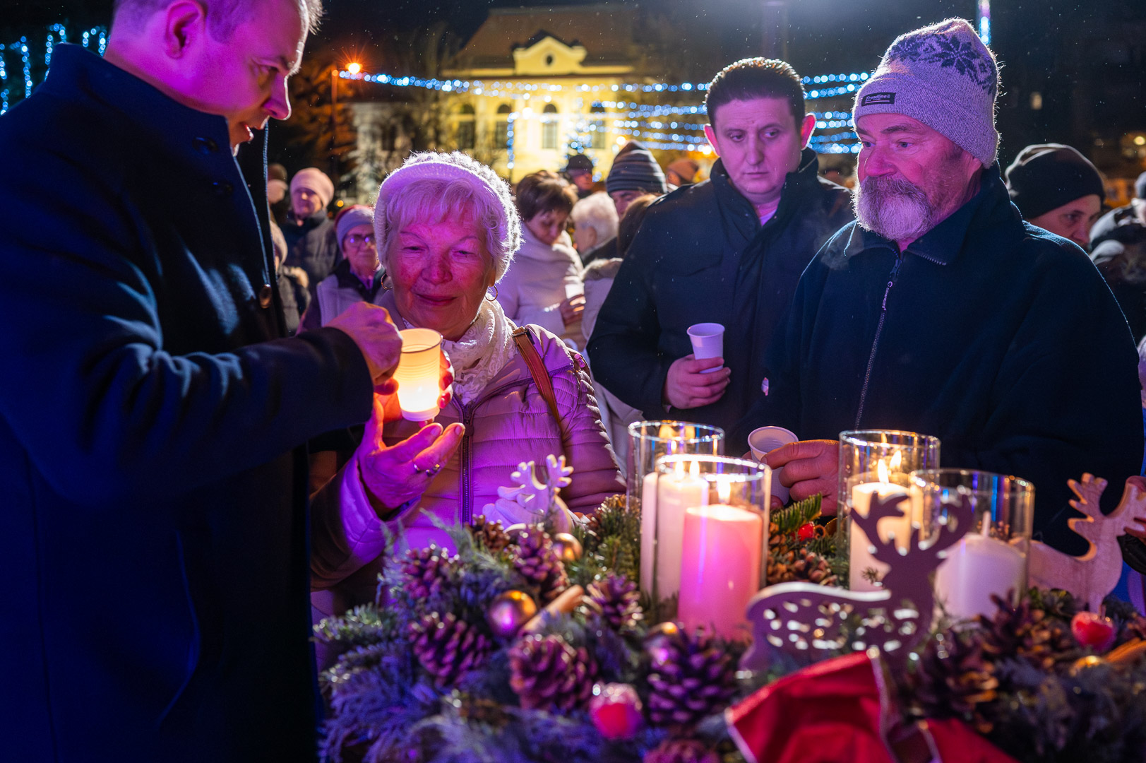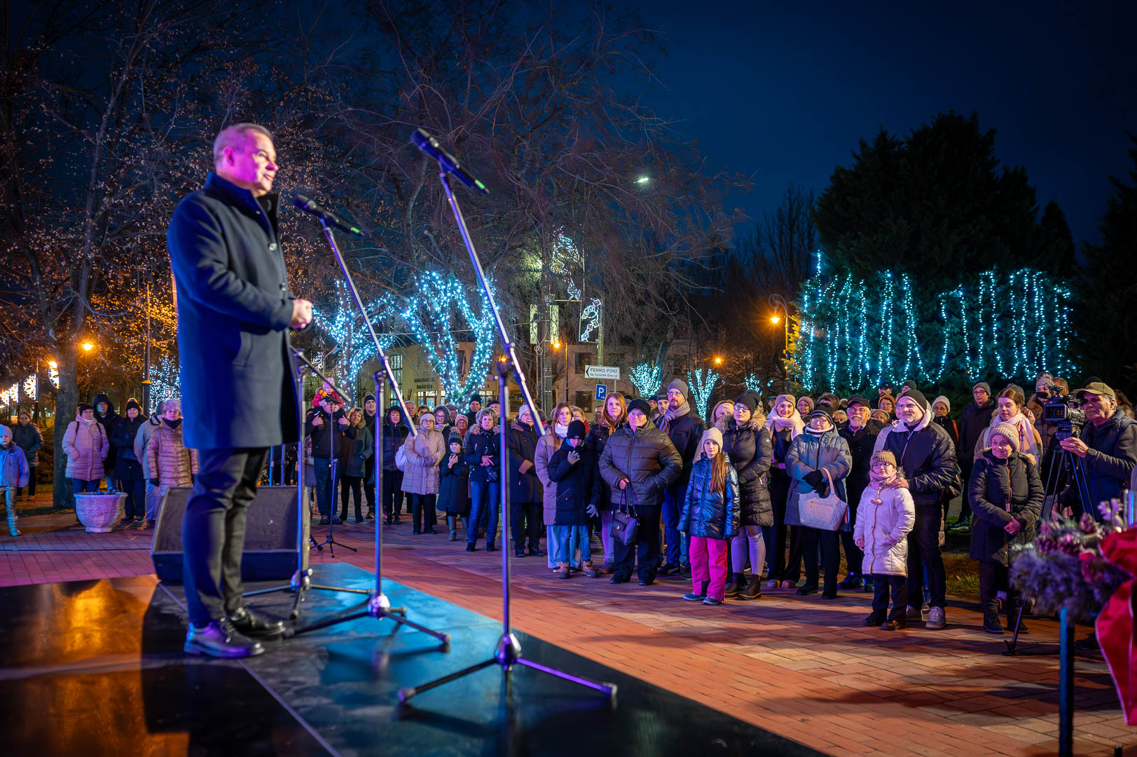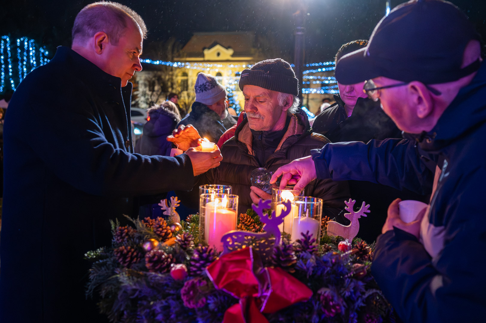 Hodálik Pál polgármester mielőtt átvette volna a betlehemi láng felelősétől, Závoda Ferenc képviselőtől a lángot őrző lámpást személyes történetekkel érzékeltette az öröm jelentőségét. Példaként a gyereket hozta, hogy a kicsik mennyire tudnak apró dolgoknak is őszintén örülni. Felidézte, hogyan kapott egy rajzot egy kisfiútól, aki polgármester szeretne lenni, és ebből kiindulva rámutatott: a felnőttek sokszor annyira rohannak, hogy észre sem veszik az élet apró örömeit. Hangsúlyozta, mennyire fontos megtanulni örülni mások sikerének is, hiszen az irigység az egyik legerősebb negatív érzés, ami gyengíti a közösséget.