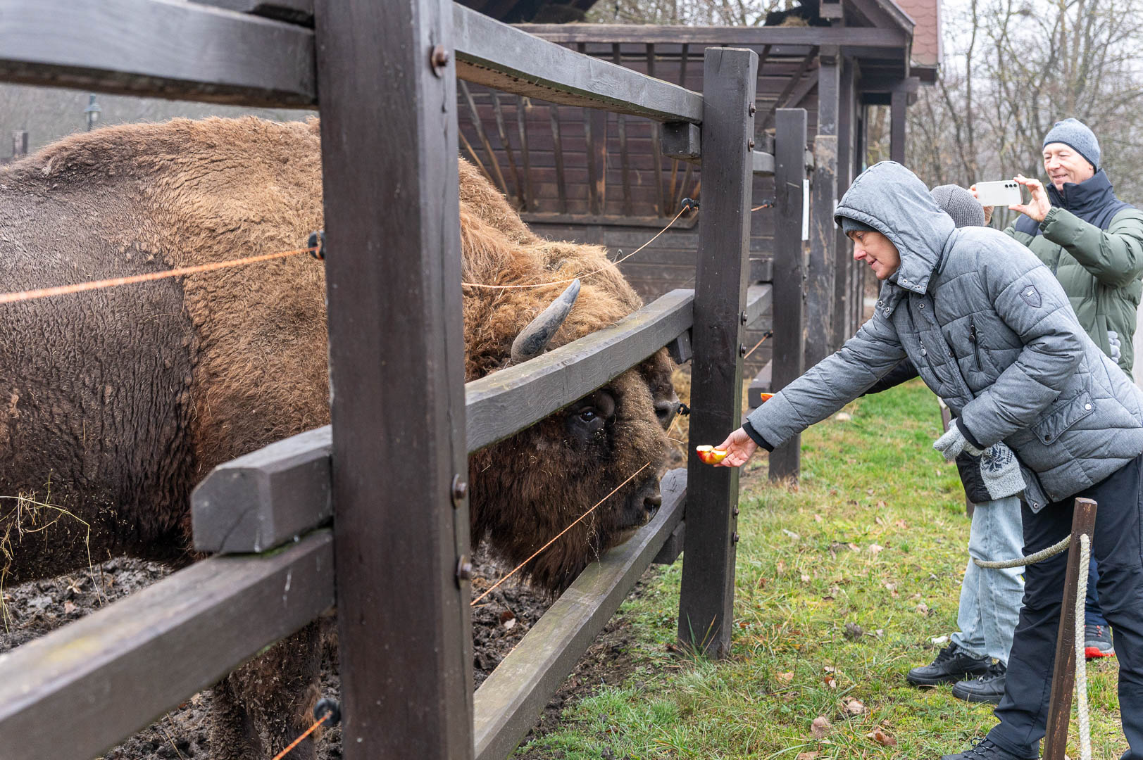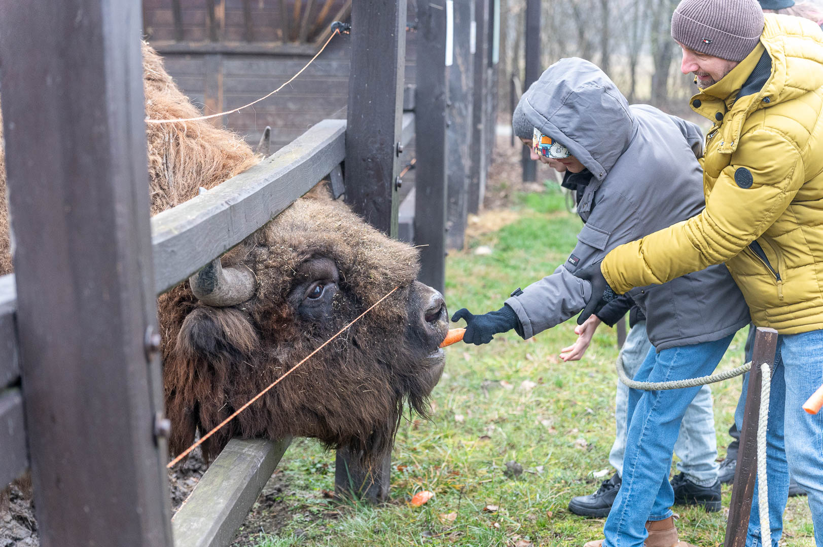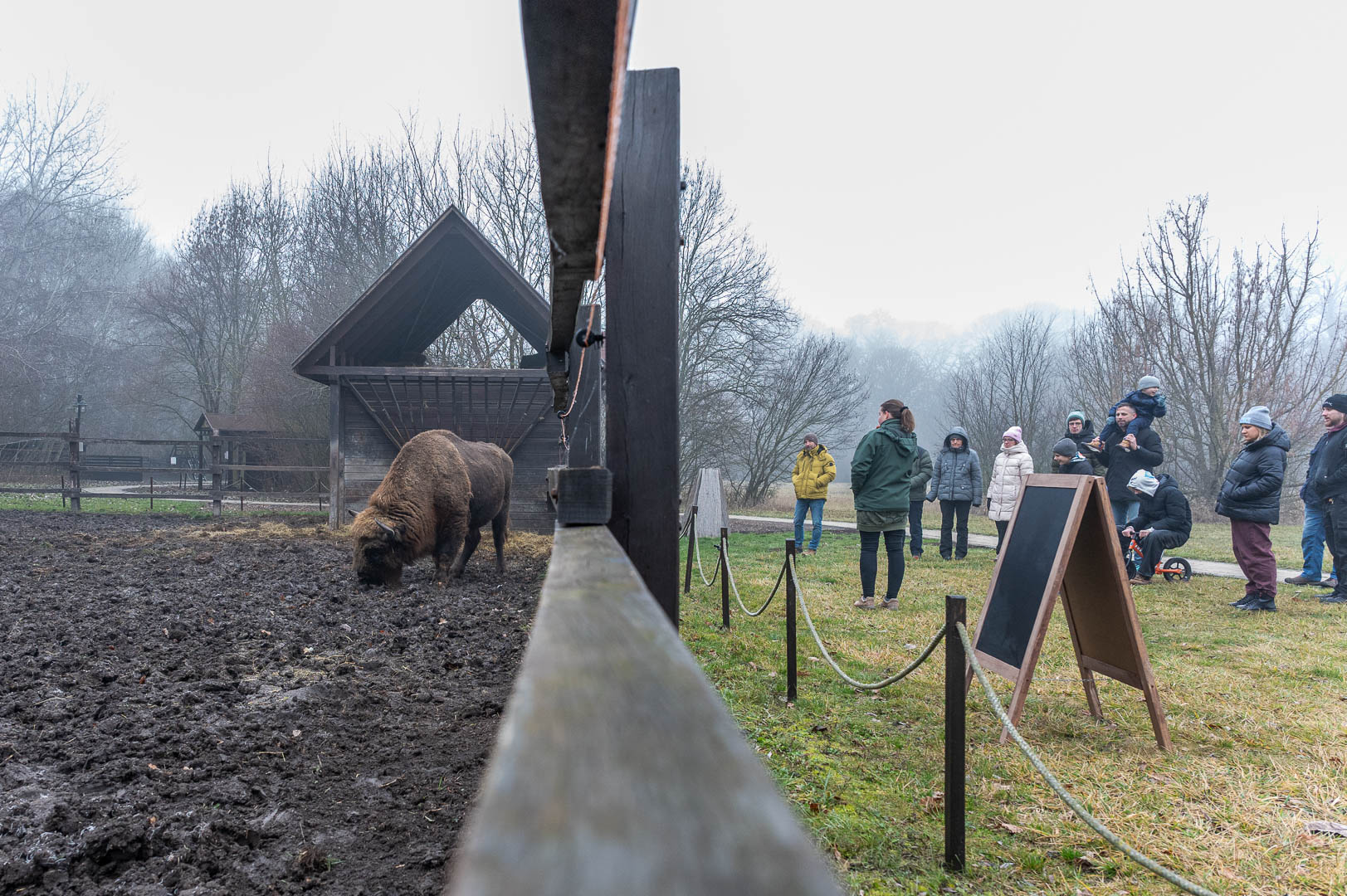 A fotók a bölények december 27-i látványetetésén készültek. Akkor a látogatók nemcsak e hatalmas, mégis békés állatok táplálkozási szokásait ismerhették meg, hanem bepillantást kaptak a fajmegőrzés kulisszái mögé is. A bölények története mára valódi természetvédelmi sikertörténetté vált: az 1920-as években a kihalás szélére sodródtak, de az állatkertek, köztük a Körösvölgyi Állatpark, közös erővel segítették visszatérni őket az európai erdőkbe.