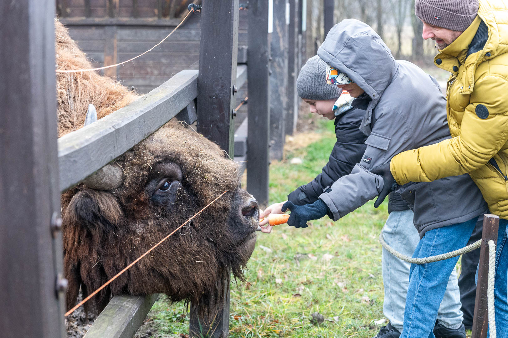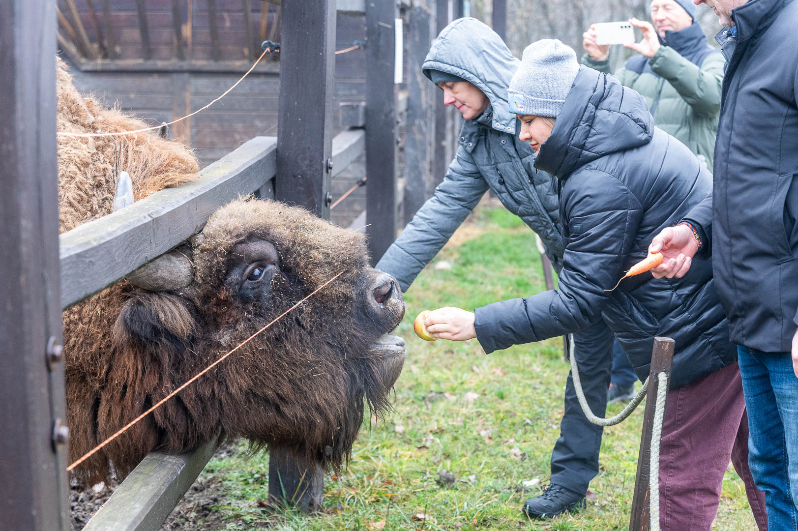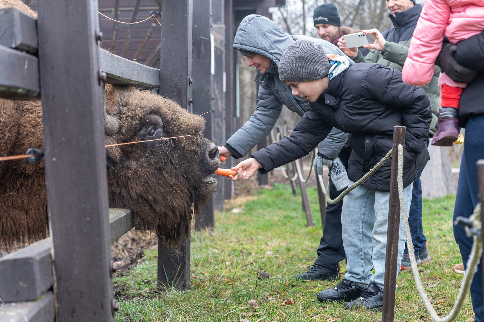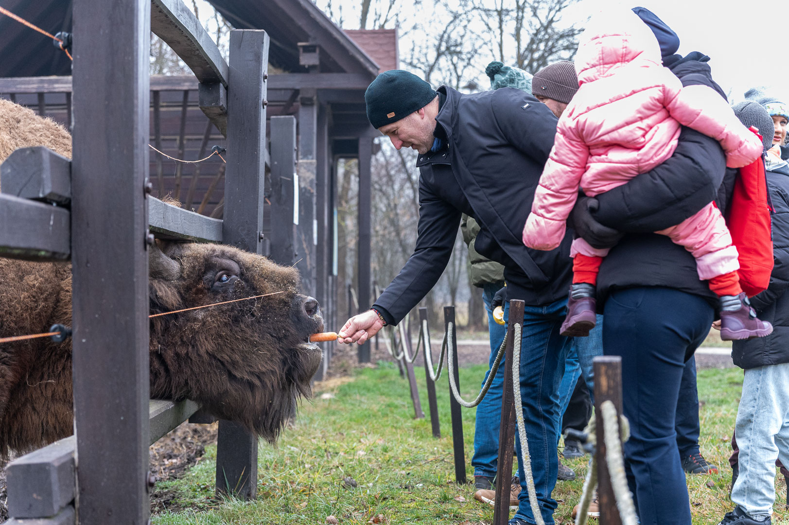 A fotók a bölények december 27-i látványetetésén készültek. Akkor a látogatók nemcsak e hatalmas, mégis békés állatok táplálkozási szokásait ismerhették meg, hanem bepillantást kaptak a fajmegőrzés kulisszái mögé is. A bölények története mára valódi természetvédelmi sikertörténetté vált: az 1920-as években a kihalás szélére sodródtak, de az állatkertek, köztük a Körösvölgyi Állatpark, közös erővel segítették visszatérni őket az európai erdőkbe.