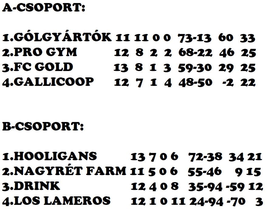LOS LAMEROS-DRINK 2-5(1-2) jv: Orovecz gólok: Lázár, Farkas ill. Filyó 3, Steigler, Medvegy