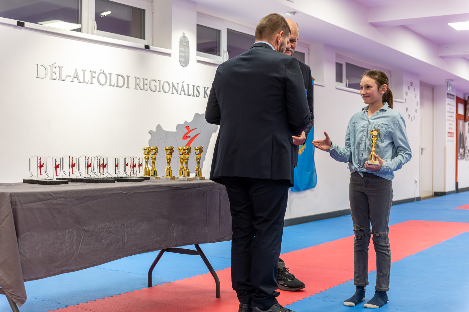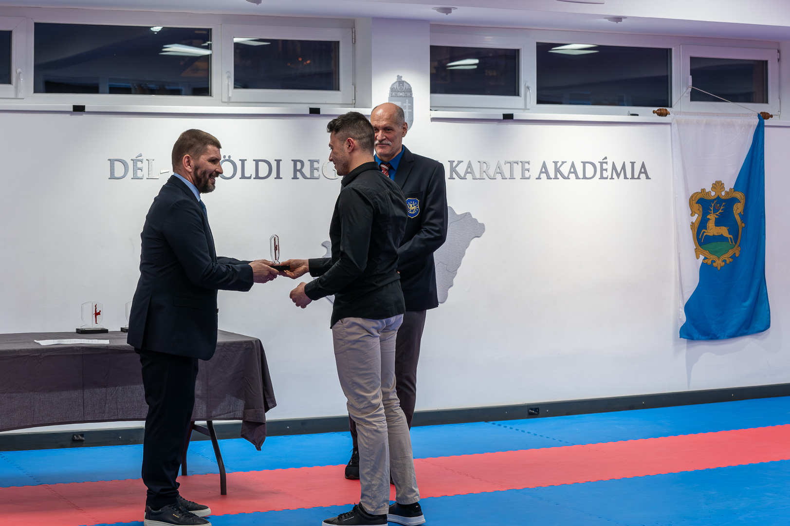 Hodálik Pál polgármester elmondta, Szarvas városa kiemelt figyelmet fordít a sportra: a település saját bevételeinek 2 százalékát különíti el erre a célra a sportalapon keresztül. Ez a forrás biztosítja az egyesületek működéséhez szükséges közvetlen támogatást, valamint a sportlétesítmények fenntartását és fejlesztését is. A polgármester hangsúlyozta, hogy a Sportbizottság aktívan figyelemmel kíséri az egyesületek életét, és ez a stabil finanszírozási rendszer tette lehetővé, hogy a város korábban elnyerje a „Nemzeti Sportváros” címet is. A jövőbeli fejlesztéseket illetően megerősítette, hogy az önkormányzat támogatja a karate klub ingatlanfejlesztési terveit és ambiciózus elképzeléseit, az infrastruktúra további korszerűsítése és a nemzetközi kapcsolatok elmélyítése vonatkozásában, amelyhez a város vezetése nevében a jövőben is partnerséget ígér.