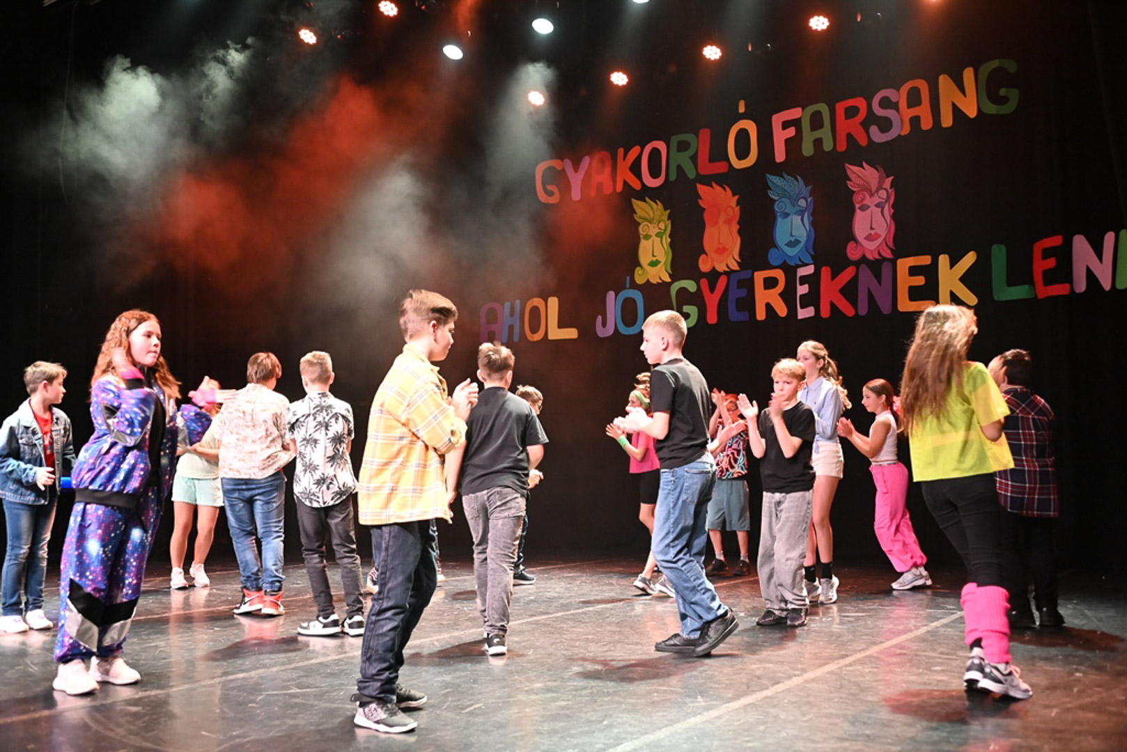 A 2026-os esztendőben is bebizonyosodott, hogy a Farsangi Gála nem csupán egy iskolai rendezvény, hanem a hagyományok, a kreativitás és a határtalan jókedv közös ünnepe a Gyakorlóban. Az estét Kriszti néni és Gyulabá, a két „sziporkázó” műsorvezető nyitotta meg, akik már az első percekben megalapozták a hangulatot huncut élcelődésükkel, és az elmaradhatatlan „susogódobogócsattanógyakorlós” közönség bemozgatással. Amikor Bíró Gyula ünnepélyesen belekezdett a farsangi népszokások ismertetésébe, Balláné Tóth Krisztina azonnal leintette: „GyusziNyuszi, állj meg egy szóra! Ne tartsd meg a teljes néprajzi előadást, mert a végén még azt hiszik a vendégek, hogy vizsgázni jöttek, nem fánkot enni!”. Megdermedt a terem…