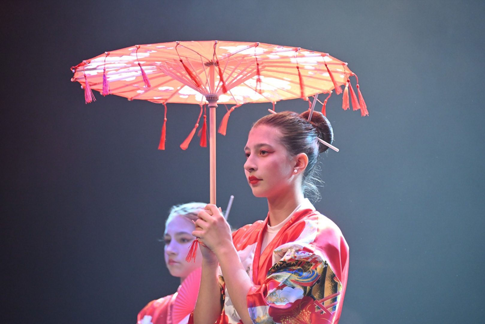 A misztikum és a fegyelem világába a 8. b osztály kalauzolt el minket, akik Japán tájaira vittek: sárkány-nindzsák, fehér harcosok és kimonós lányok látványos küzdelmét láthattuk. A produkció Stafira-Lovas Ilona és Farkas Boglárka munkáját dicsérve Gyula egy stílusos „Induljon a bánszáááááj!” felkiáltással indította útjára. A csodálatos produkció méltó utolsó farsangi gála fellépése volt a 8.b-seknek, rengeteg feledhetetlen élményt szereztek az elmúlt években a nagyérdemű közönségnek. A sportrajongók örömére az 5. b osztály a színpadot sportarénává alakította, ahol a „farsangi vándorkupa” és a házi feladat mentesség volt a tét. A Piros Renáta és Kugyela Tímea által edzett csapat gólörömmel és pompom-tánccal zárta a rangadót, miközben Gyulabá emlékeztette a közönséget: a büfé bezárt, senki ne menjen sehova. „Kegyetlen” életérzés lett úrrá a színpadon és a nézőtéren egyaránt. Egyként mordult a Cervinus Aréna… Csumbóka! – üzenet innen is Fradinak a Premierbe. Várjuk a nyári „kegyetlent!”