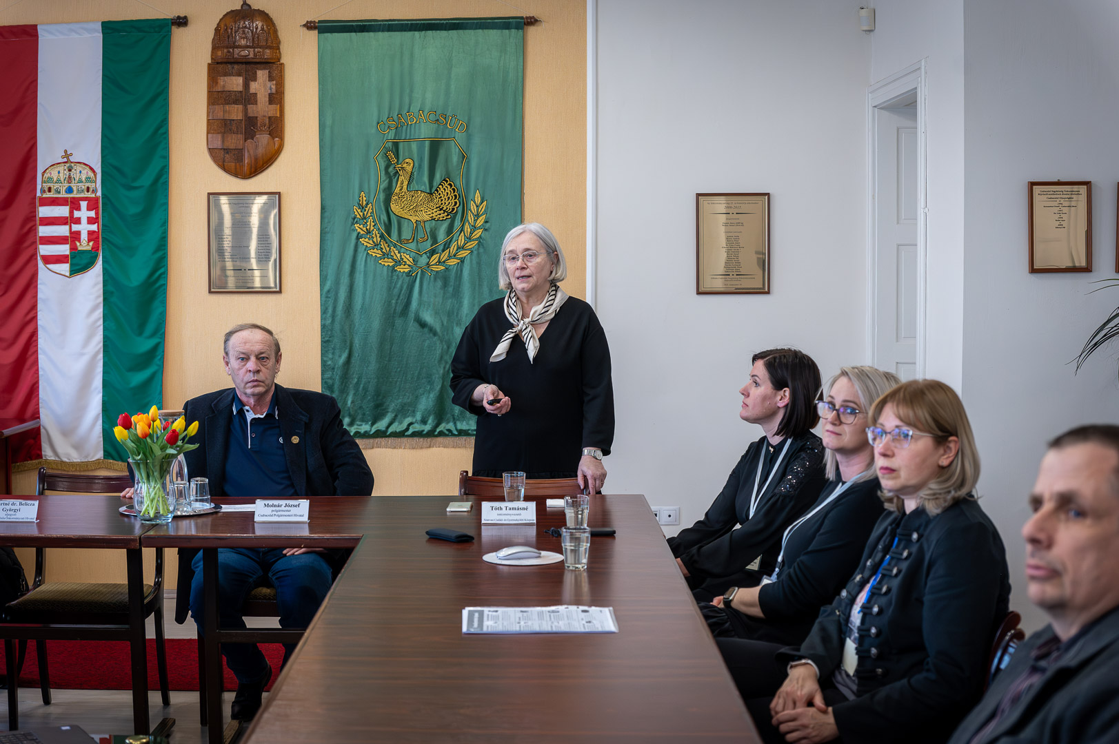 Tóth Tamásné intézményvezető bemutatta az intézmény megújult szervezeti felépítését és a Csabacsűdön dolgozó szakembereket, hangsúlyozva a két település közötti szoros szakmai kapcsolatot. Különös figyelmet szentelt a modern kor kihívásainak, kiemelve, hogy a mai családmodellben a digitális függőség jelenti a legnagyobb veszélyt a gyermekekre, ami már generációkon átívelő problémává vált. Köszönetet mondott az önkormányzatnak a biztosított infrastrukturális feltételekért és az új közösségi helyiségekért.