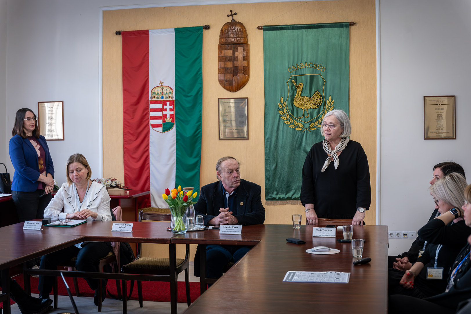 Az elsőként szóló Molnár József polgármester köszöntőjében hangsúlyozta, hogy a 2025-ös év jelentős változást hozott a település életében, miután a Szarvassal közös önkormányzati hivatal létrehozásával a csabacsűdi családsegítési feladatok a Szarvasi Család- és Gyermekjóléti Központhoz kerültek. Véleménye szerint az átállás zökkenőmentes volt, a lakosság nem érzékelt visszaesést a szolgáltatás minőségében, sőt, az ellátás színvonala a korábbiakhoz képest is stabil maradt.