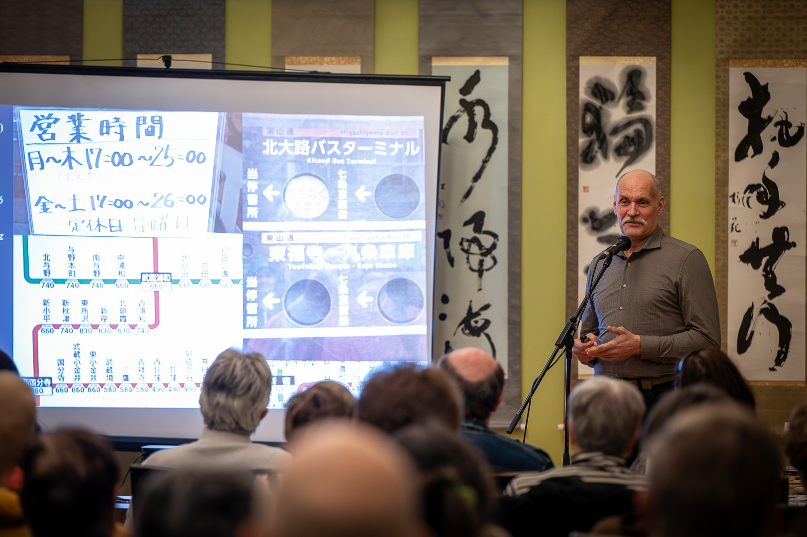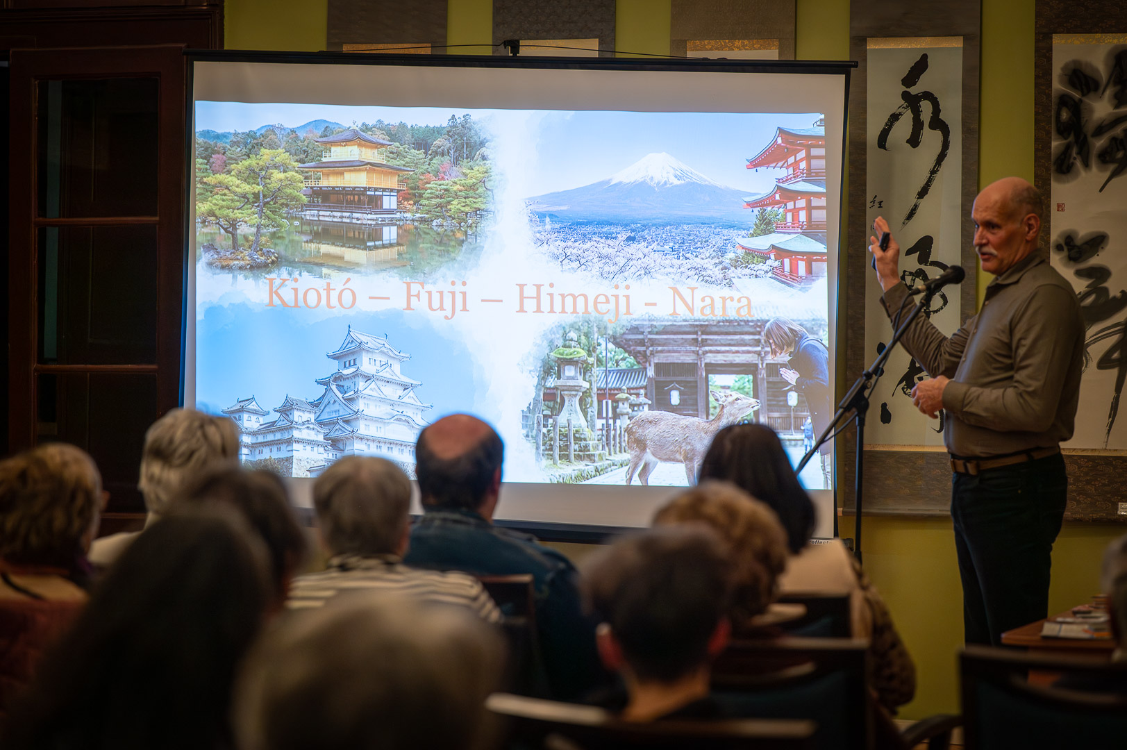 Lovász György Japánról szóló kiállítással egybekötött úti beszámolóját hallgathatták meg az érdeklődők a Tessedik Sámuel Múzeum dísztermében szerdán. (Fotó: Babák Zoltán)