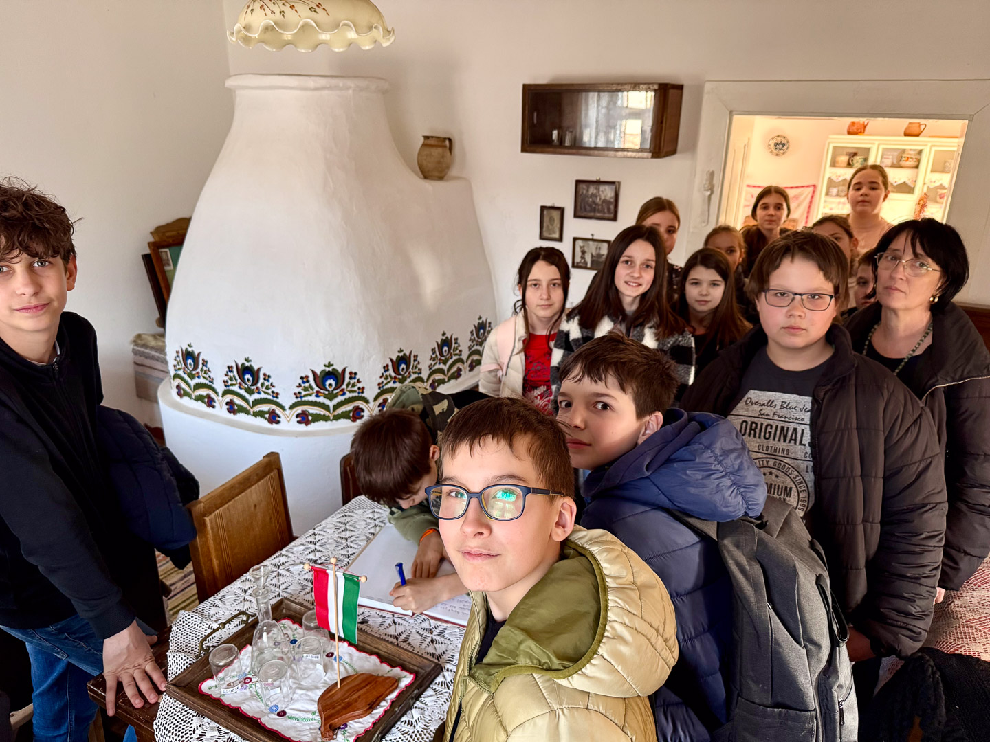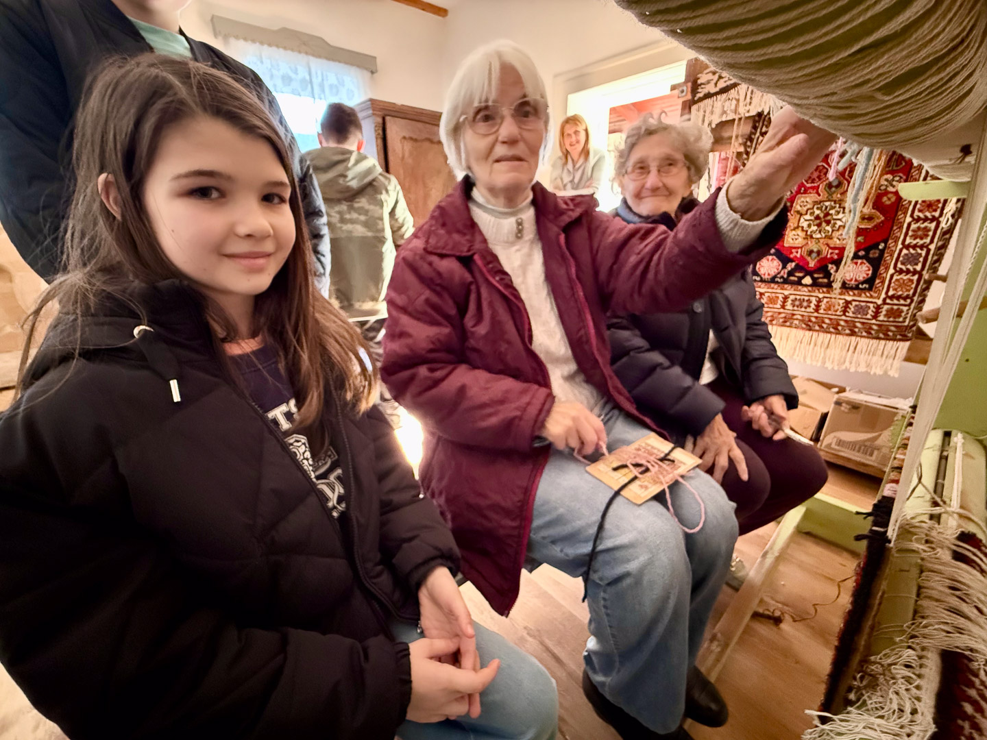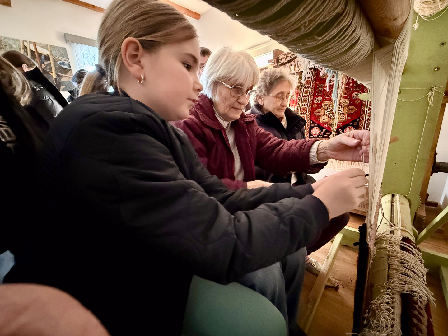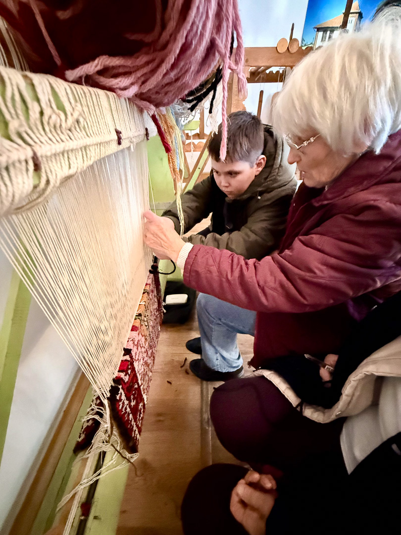 A helyi tájházba belépve olyan érzésünk volt, mintha visszaugrottunk volna az időben. A vastag vályogfalak között megbújó tárgyak mind egy-egy családi történetet meséltek. Itt találkoztunk szentandrási szőnyegszövő asszonyokkal, akik meséltek munkájukról. Megindító volt látni azt a hihetetlen szakmai tudást, amellyel az egykori mesterek ujjai között születtek a minták. A bemutató nem ért véget a nézelődéssel: a résztvevők maguk is odaülhettek a szövőszékekhez, és kipróbálhatták a csomózás technikáját. Ez a tapasztalat segített igazán megérteni, mennyi áldozatos munka, figyelem és szeretet van egy-egy kézzel készült szőnyegben.