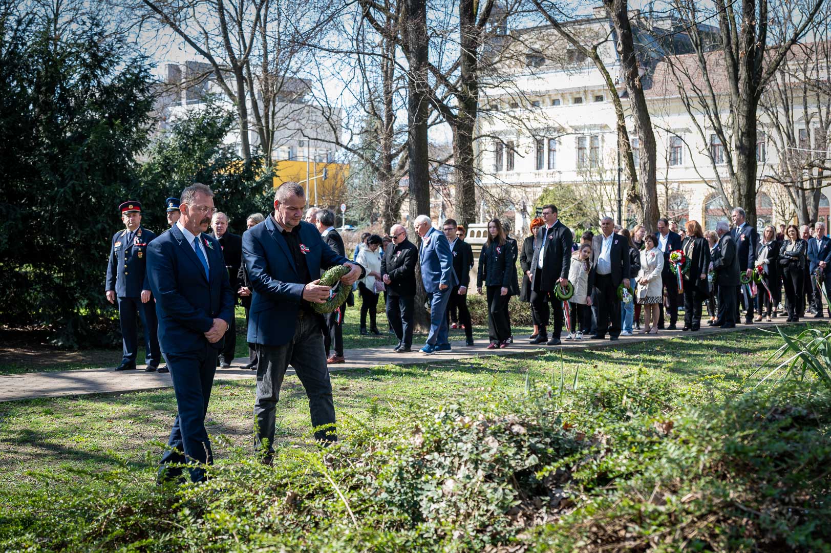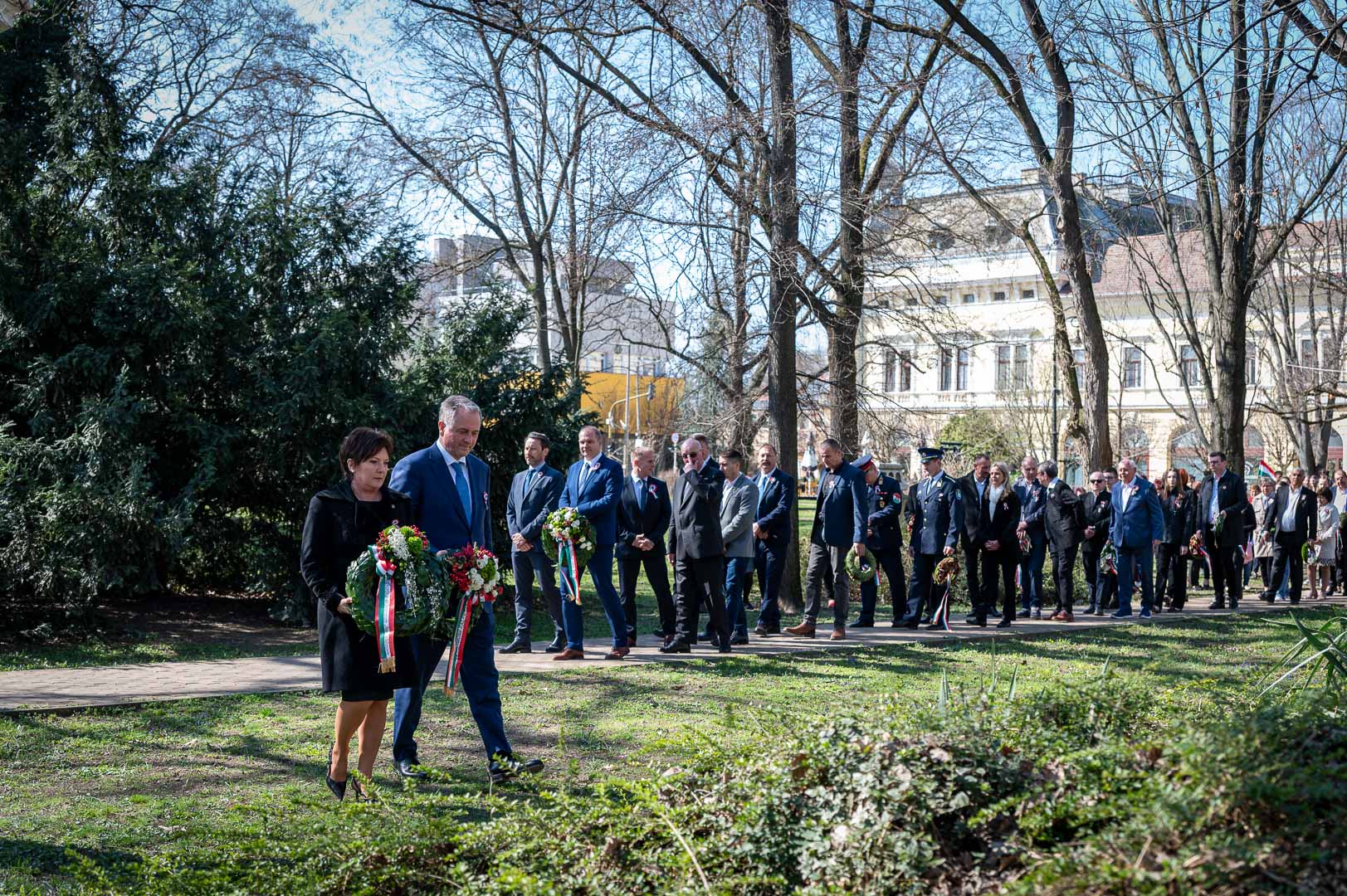 Závogyán Magdolna beszédében a márciusi ifjak ma is érvényes örökségét hangsúlyozta: a szabadság megalkuvás nélküli kivívása és megtartása nem fakult meg az évszázadok alatt. A fiatalok nem hatalomra, hanem méltóságos, szabad életre vágytak egy elnyomó birodalom ellen, felismerve, hogy az egyén boldogulása csak a közösség szabadságával lehetséges. A történelem nem független erő, hanem az emberek döntéseinek összessége – ezt formáljuk mi közösen a jövővé. Példaként említette azt a 2023 őszén indult országos kezdeményezést, ami során Kárpát-medence-szerte 1350 településen, 14 ezer ember keze által készült el másfél millió kokárda hitből és szeretetből. Ezek a nemzet egységének tanúságtételei, ahol múlt, jelen és jövő egyesül: “Egy a nemzet!” – térképtől függetlenül, közös nyelvvel, kultúrával és felelősséggel.