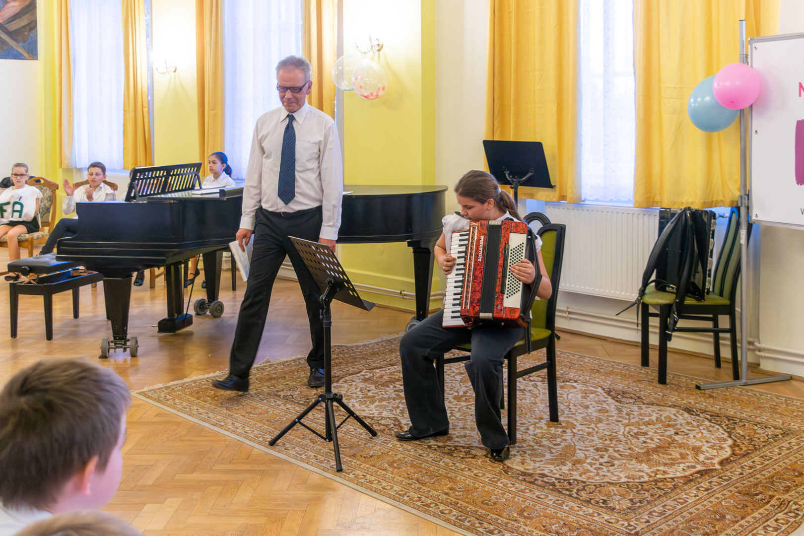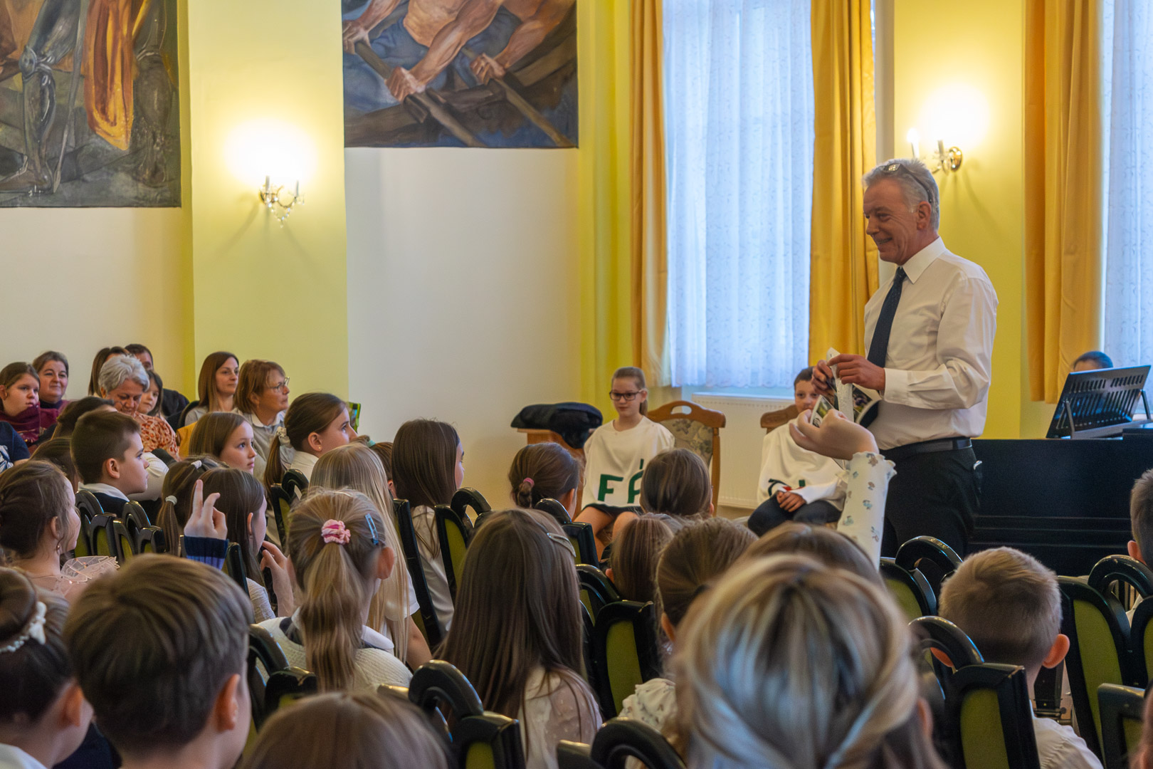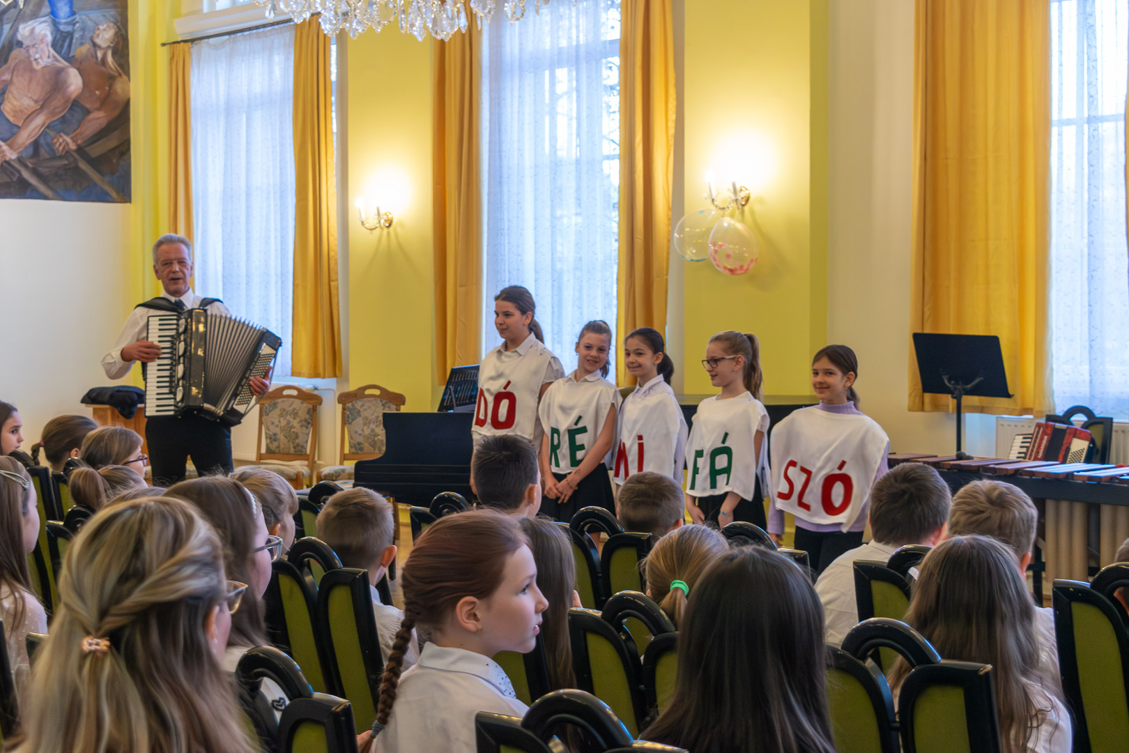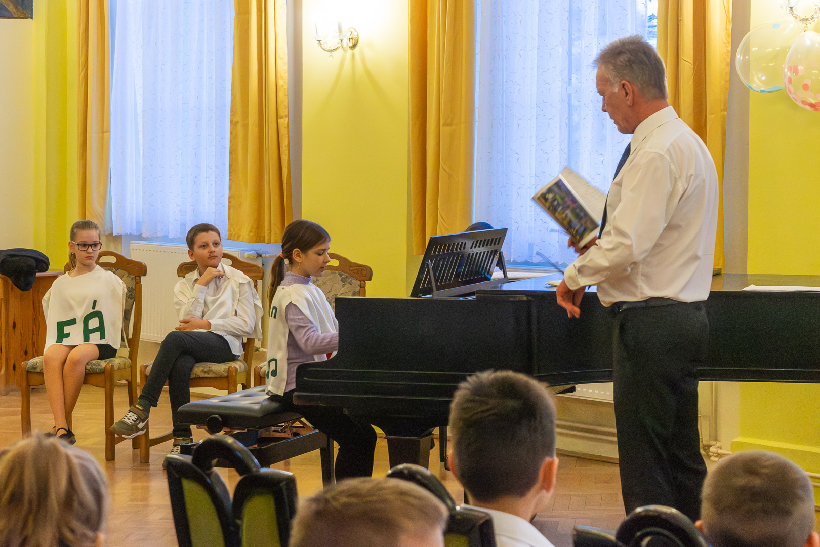 Idén március 9-én gyűltek össze a Főtéri Iskola dísztermében a tanév elsős zenész növendékei, szám szerint ötvennyolcan. Iváncsó József harmonika és szolfézstanár köszöntötte őket és a közönséget, s a Muzsika hangja c. musical népszerű szolmizációs dalával hívta be segítségeit, a szolmizációs hangokat, akiket a felsőbb éves zeneiskolások alakítottak. Az utolsó, a „Ti” hangocska azonban sírva érkezett, s elmondta, hogy rosszfiúk megtámadták és elvették tőle a „Nagykönyvet”, így veszélybe került a zenészavató. A rosszfiúk Iváncsó tanárúr telefonján jelezték követeléseiket, egy hosszú papírtekecsre leírt kérdésekre kellett válaszolni az elsősöknek hibátlanul, hogy visszakaphassák az értékes, sok száz nevet és fotókat tartalmazó „Nagykönyvet.