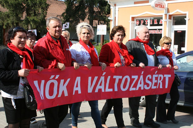 • Piros sállal demonstráltak a nők jogaiért a szocialisták