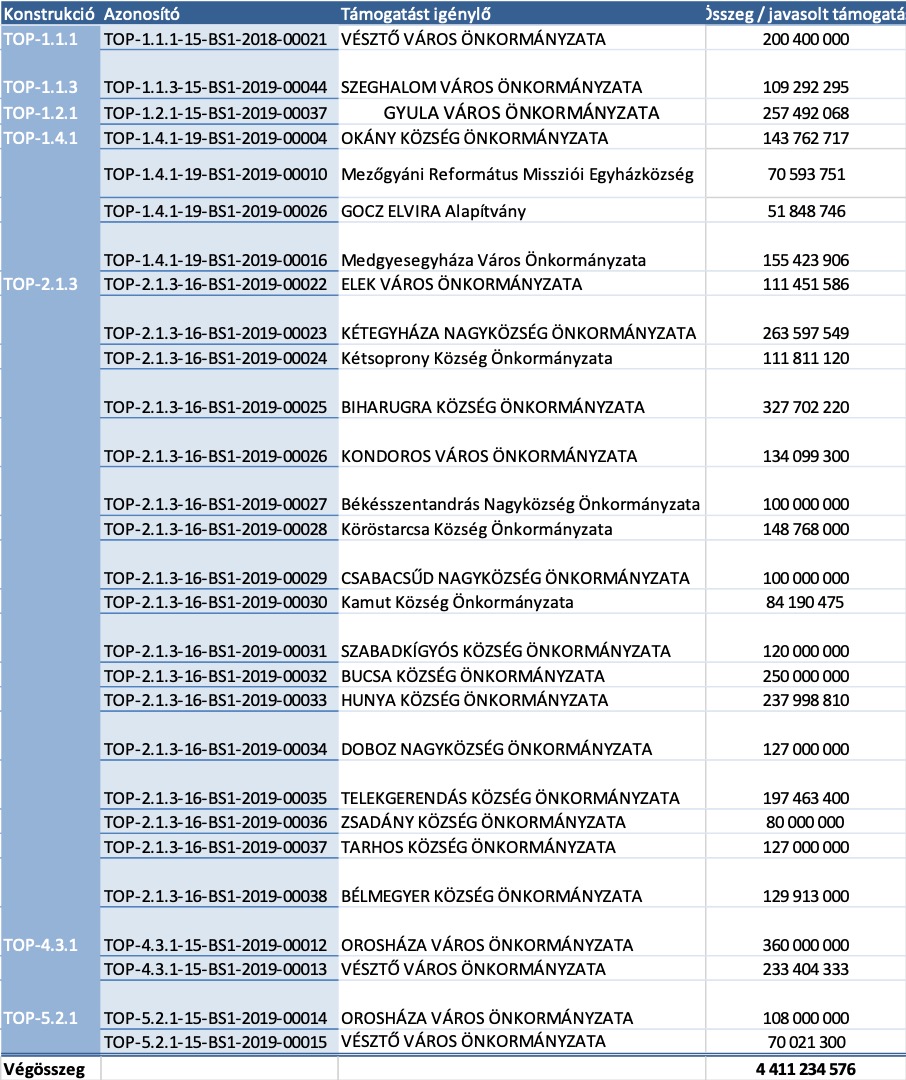 • Békésszentandrás és Csabacsűd is 100-100 milliót kapott