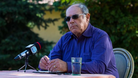 • Gajdos Attila az MSZP irodája előtt tartott sajtótájékoztatóján 2021. szeptember 16-án