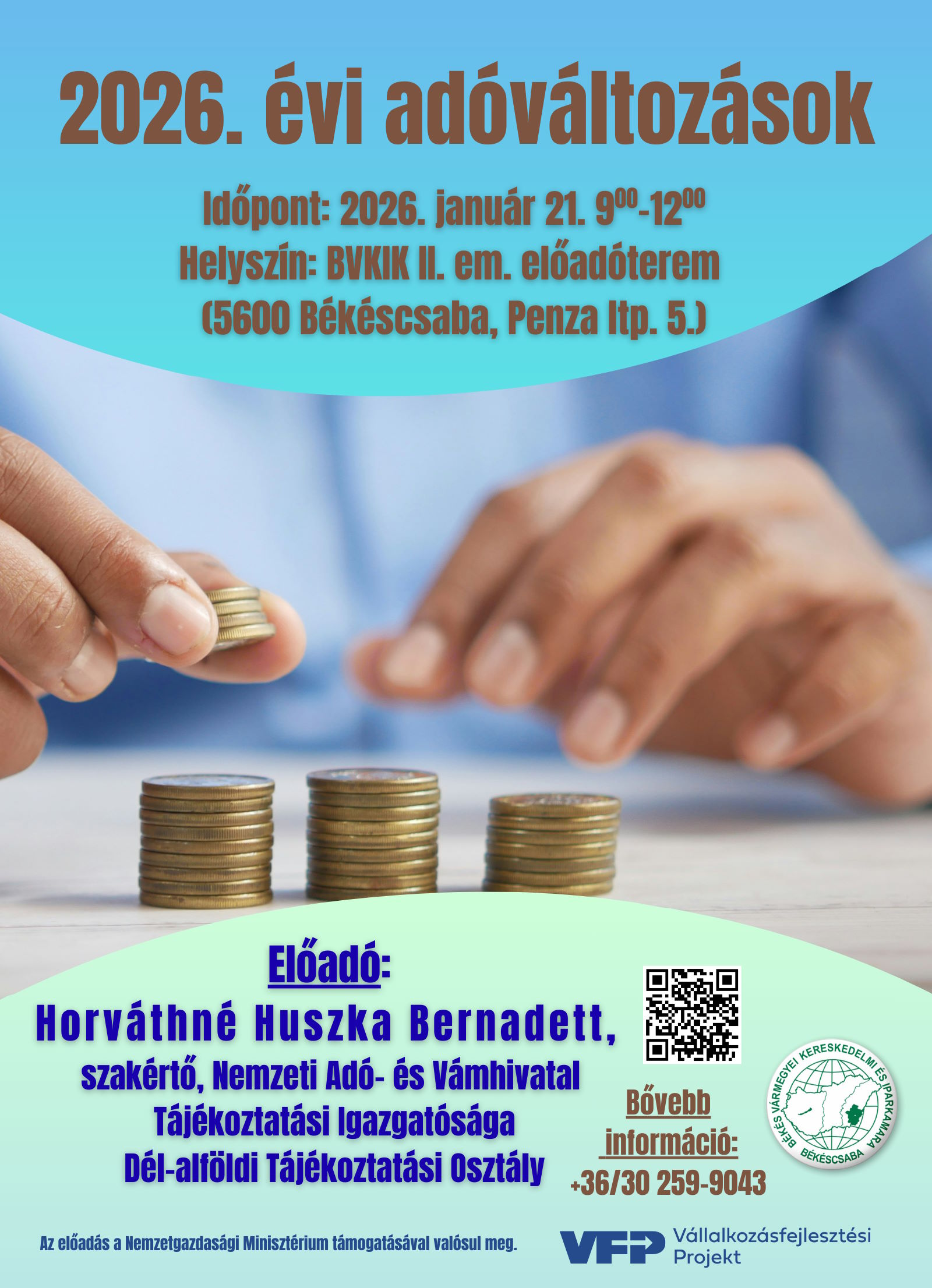 2026. évi adóváltozásoksze21jan09:00sze12:0009:00 - 12:00 Békés Vármegyei Kereskedelmi és IparkamaraCompleted