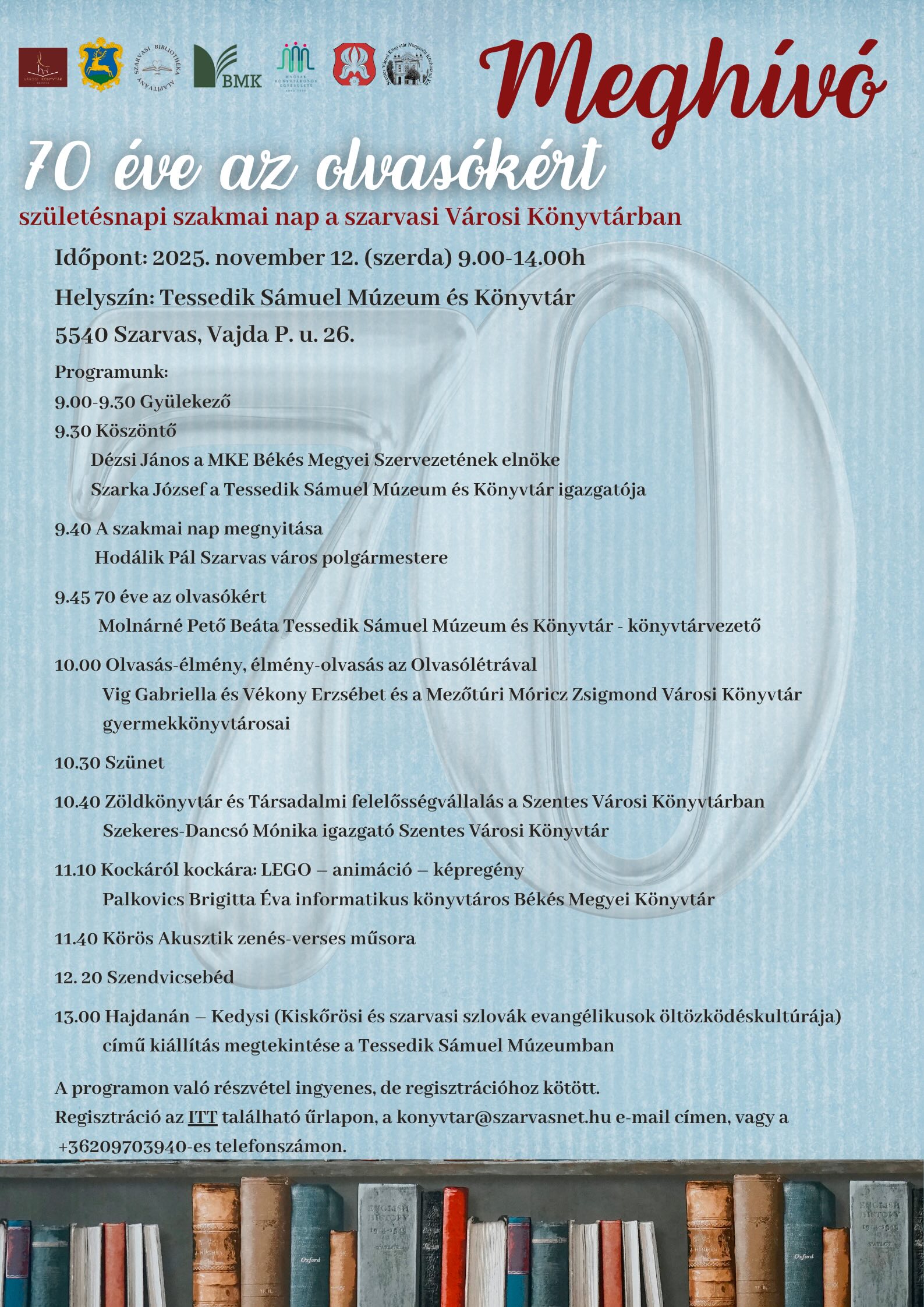 70 éve az olvasókértsze12nov09:00sze14:0009:00 - 14:00 Városi Könyvtár, Vajda Péter u. 26.Completed