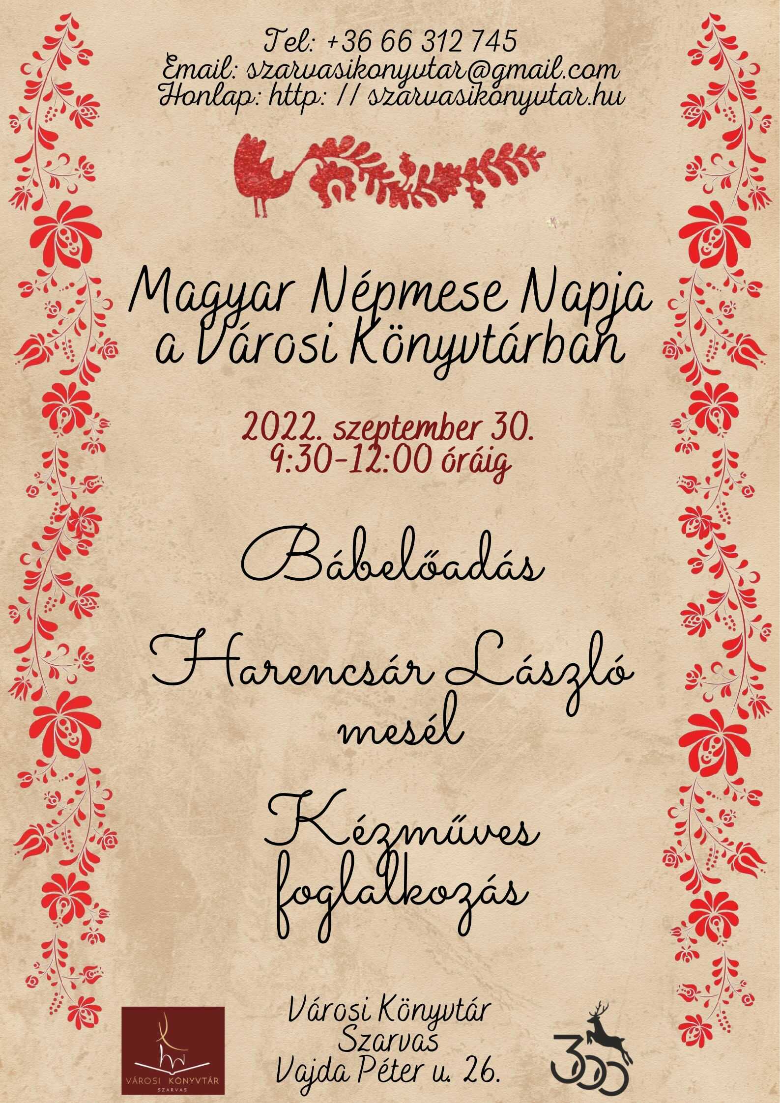 A magyar népmese napjapént30szept09:30pént12:0009:30 - 12:00 Városi Könyvtár, Vajda Péter u. 26.Completed