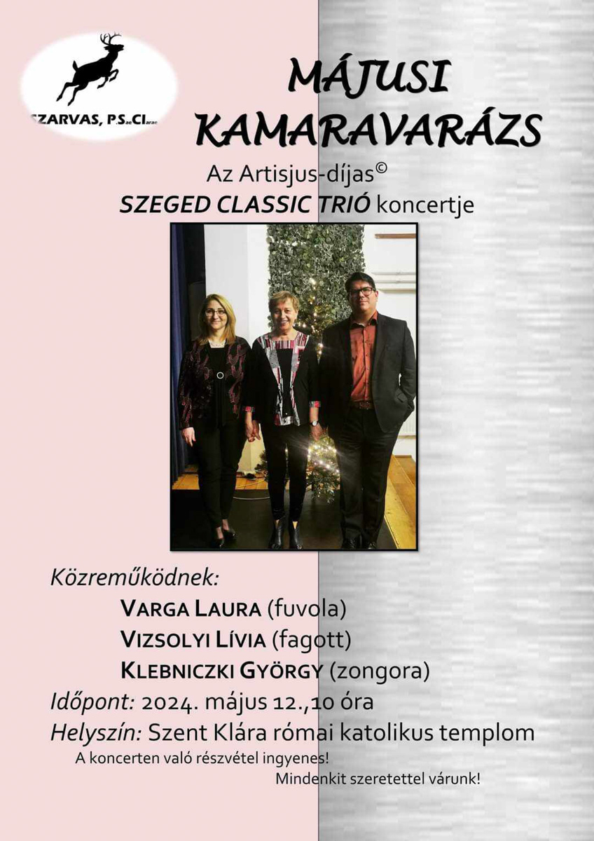 A Szeged Classic Trió koncertjevas12máj10:0010:00 Szent Klára római katolikus templomCompleted