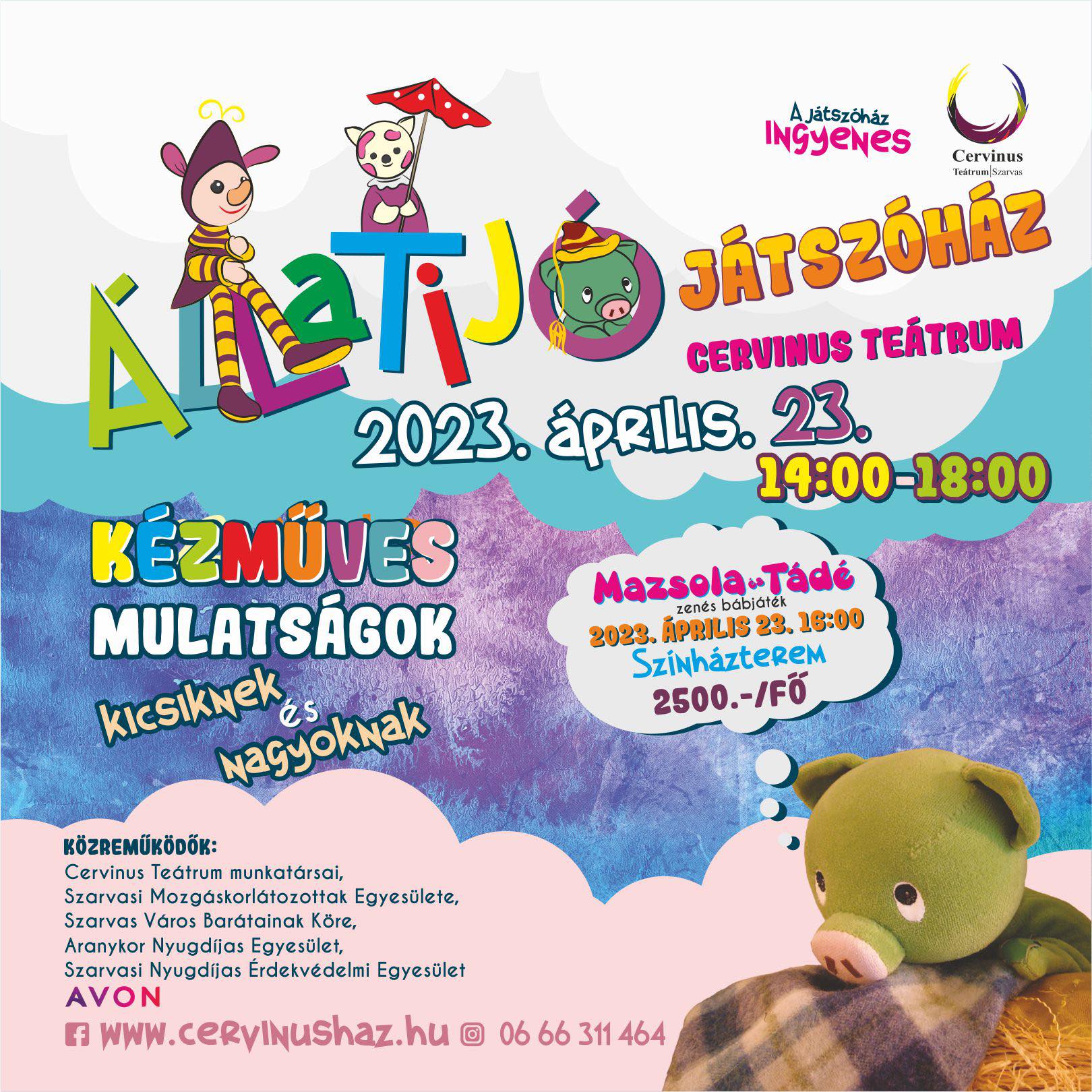 Állatijó játszóházvas23ápr14:00vas18:0014:00 - 18:00 Cervinus Teátrum, Kossuth tér 3.Completed