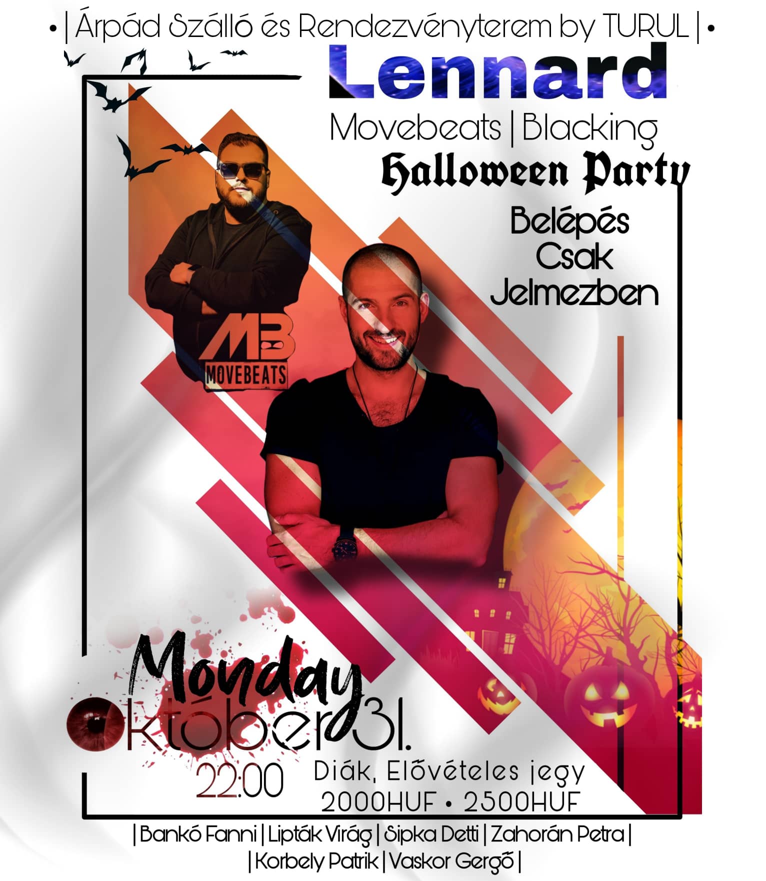 Beöltözős Halloween Party az Árpádbanhé31okt22:00hé23:5922:00 - 23:59 Árpád Szálló dísztermeCompleted