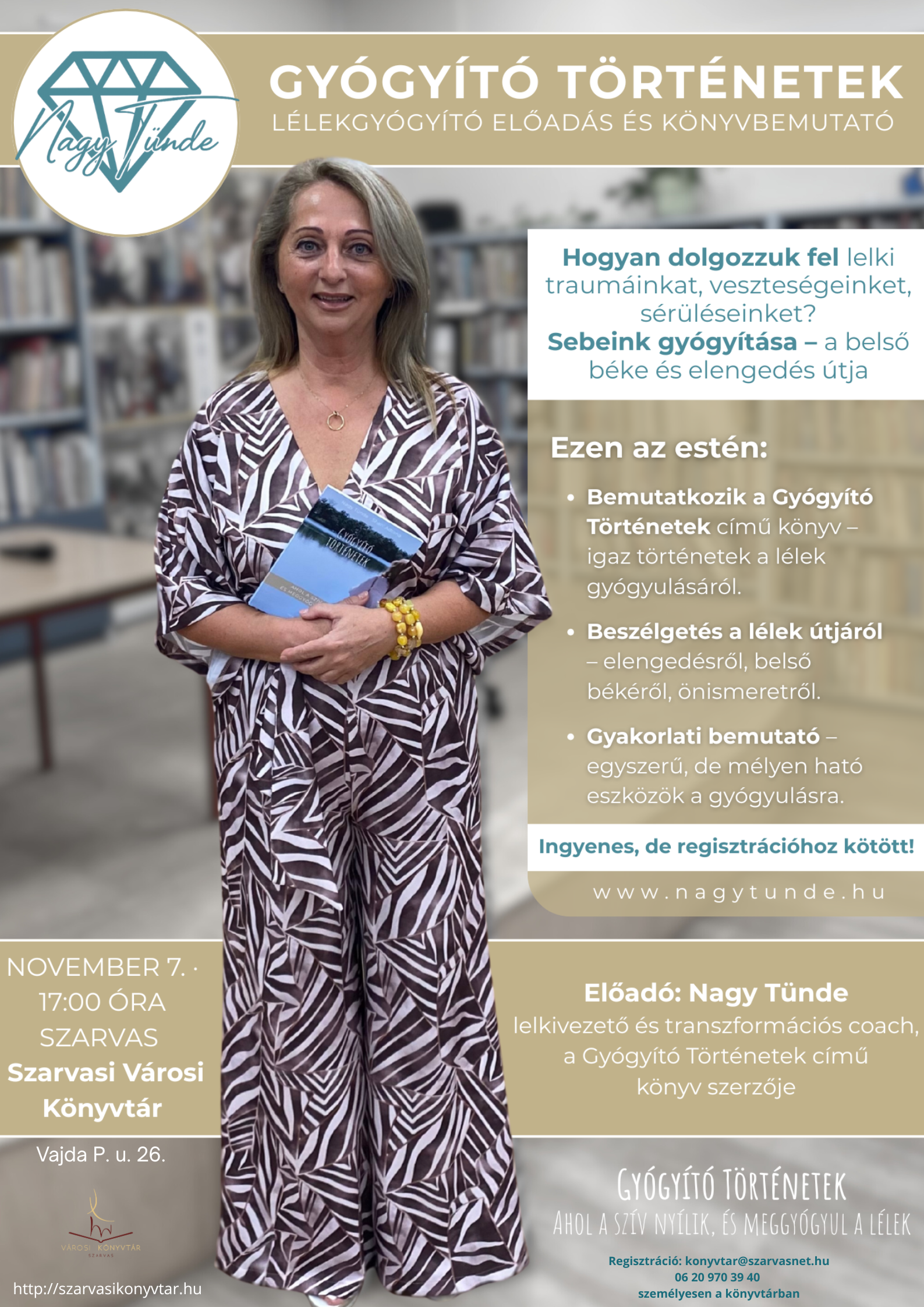 Gyógyító történetek - Nagy Tünde előadásapént07nov17:0017:00 Városi Könyvtár, Vajda Péter u. 26.Completed
