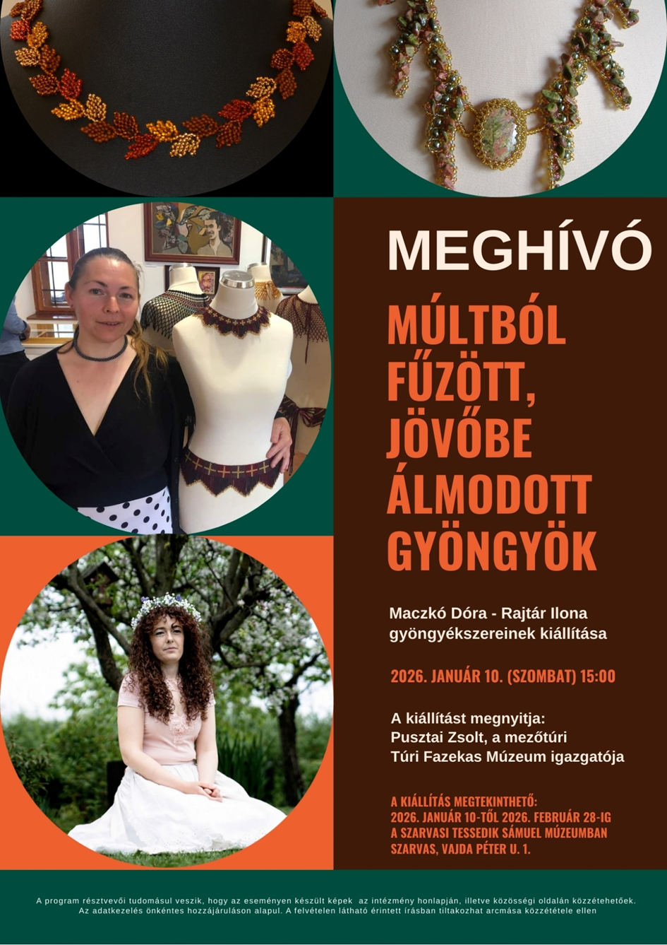Maczkó Dóra és Rajtár Ilona gyöngyékszereinek kiállítása – „Múltból fűzött, jövőbe álmodott gyöngyök” címmel Megnyitó: 2026. január 10. (szombat) 15:00